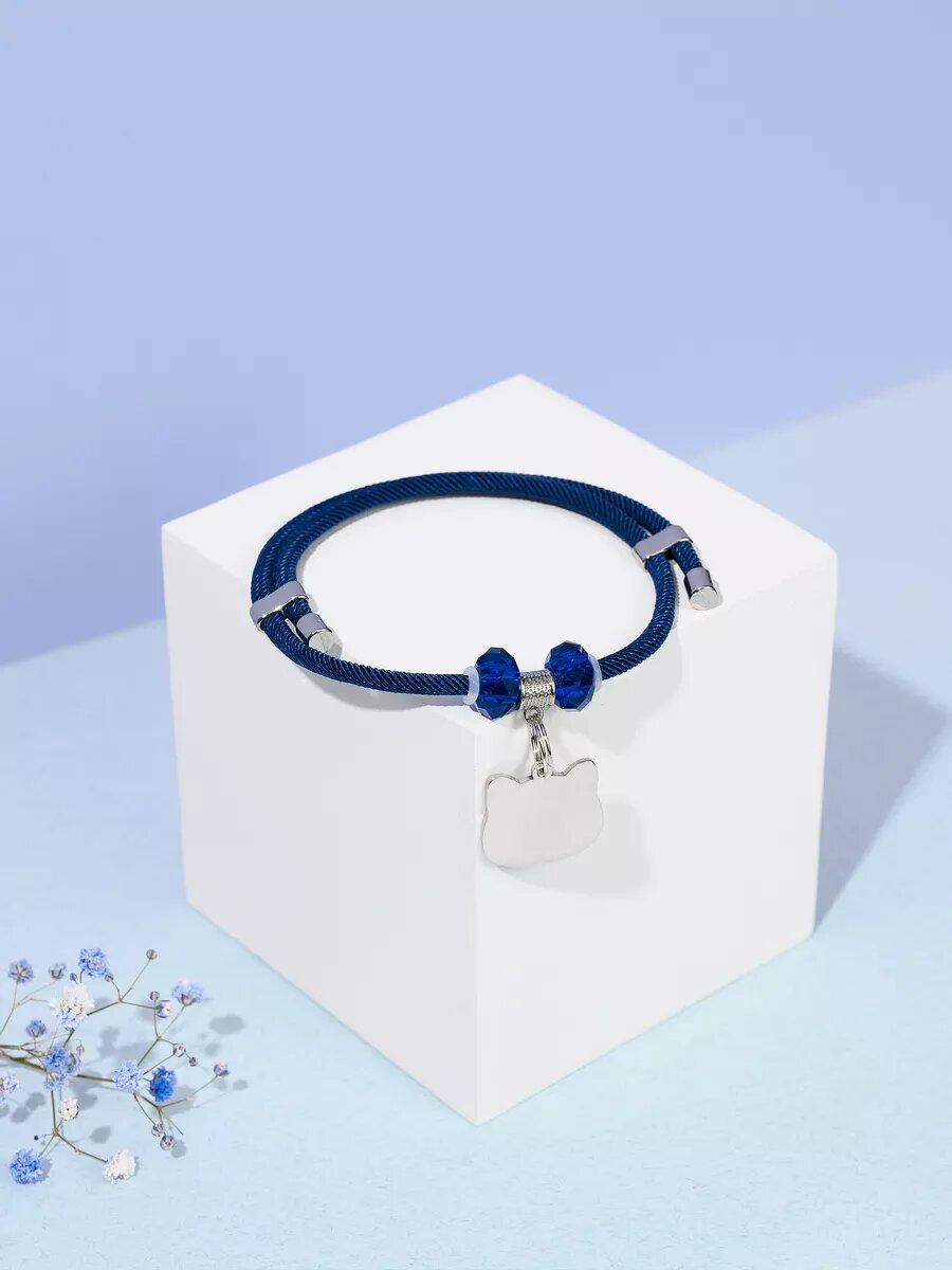 Купить Ошейник Балуем Котика, шнурок, с адресником, синий, 22-28 см