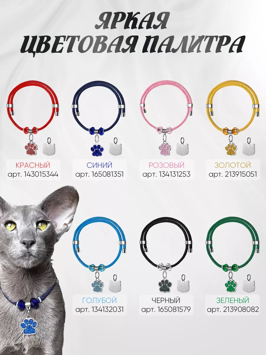 Ошейник Балуем Котика, для кошек и собак, с адресником, миланская веревка