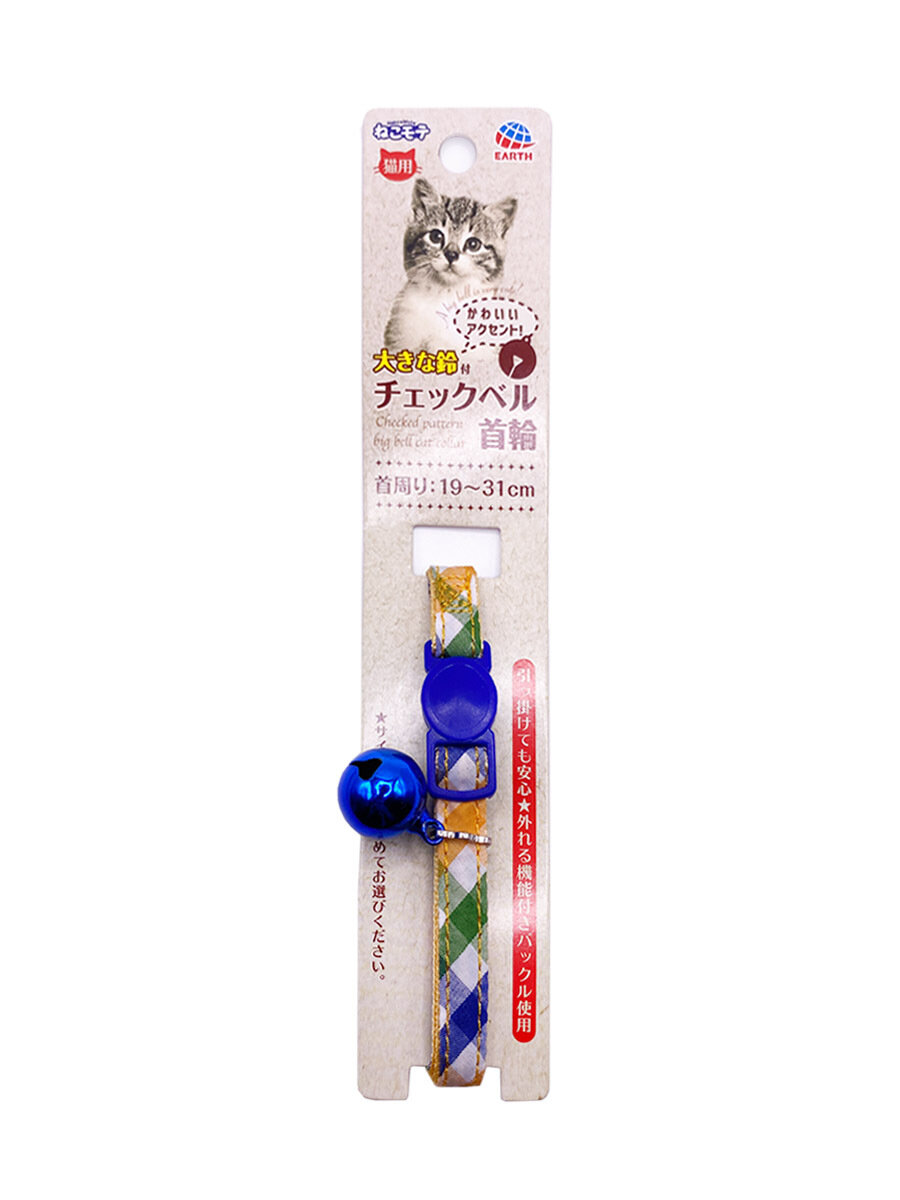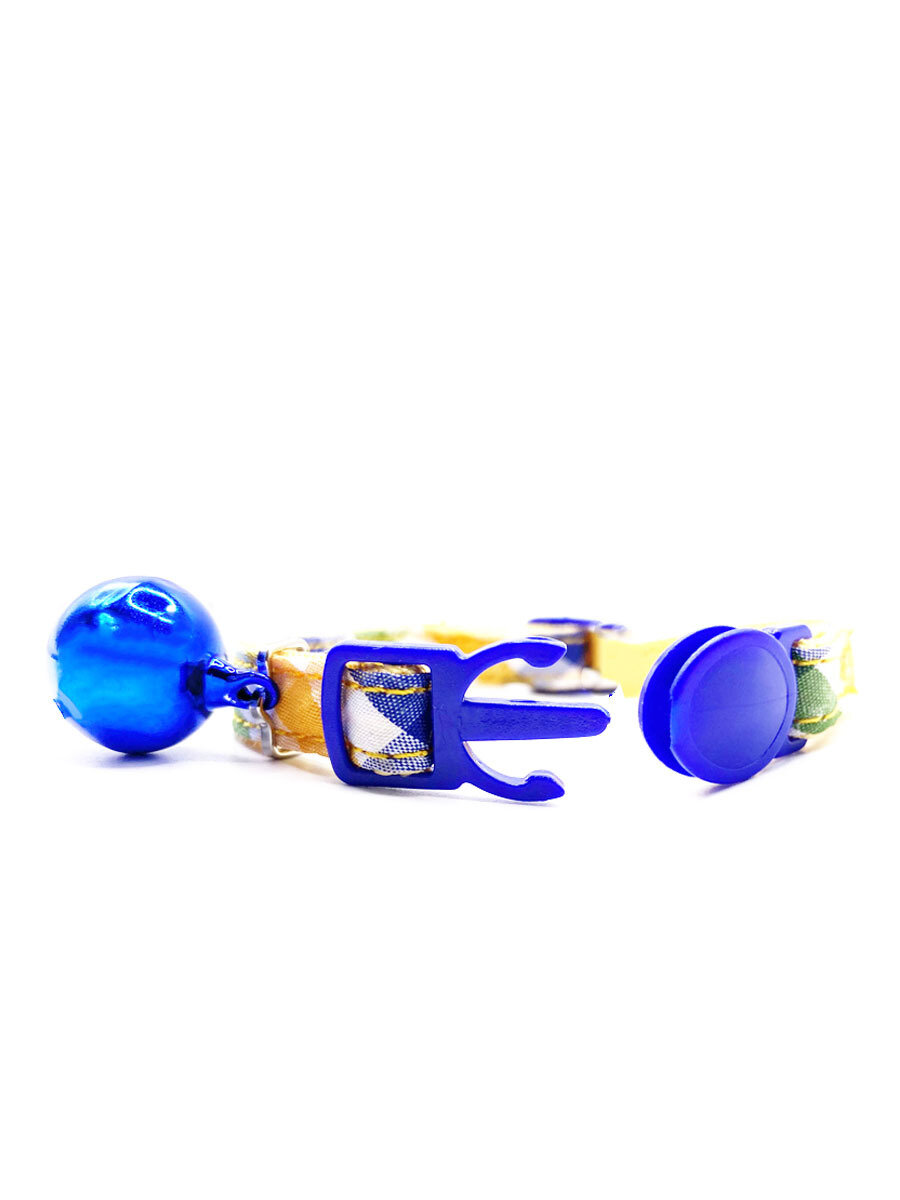 Купить Безопасный ошейник Japan Premium Pet "Элегантный котик" в клеточку, синий