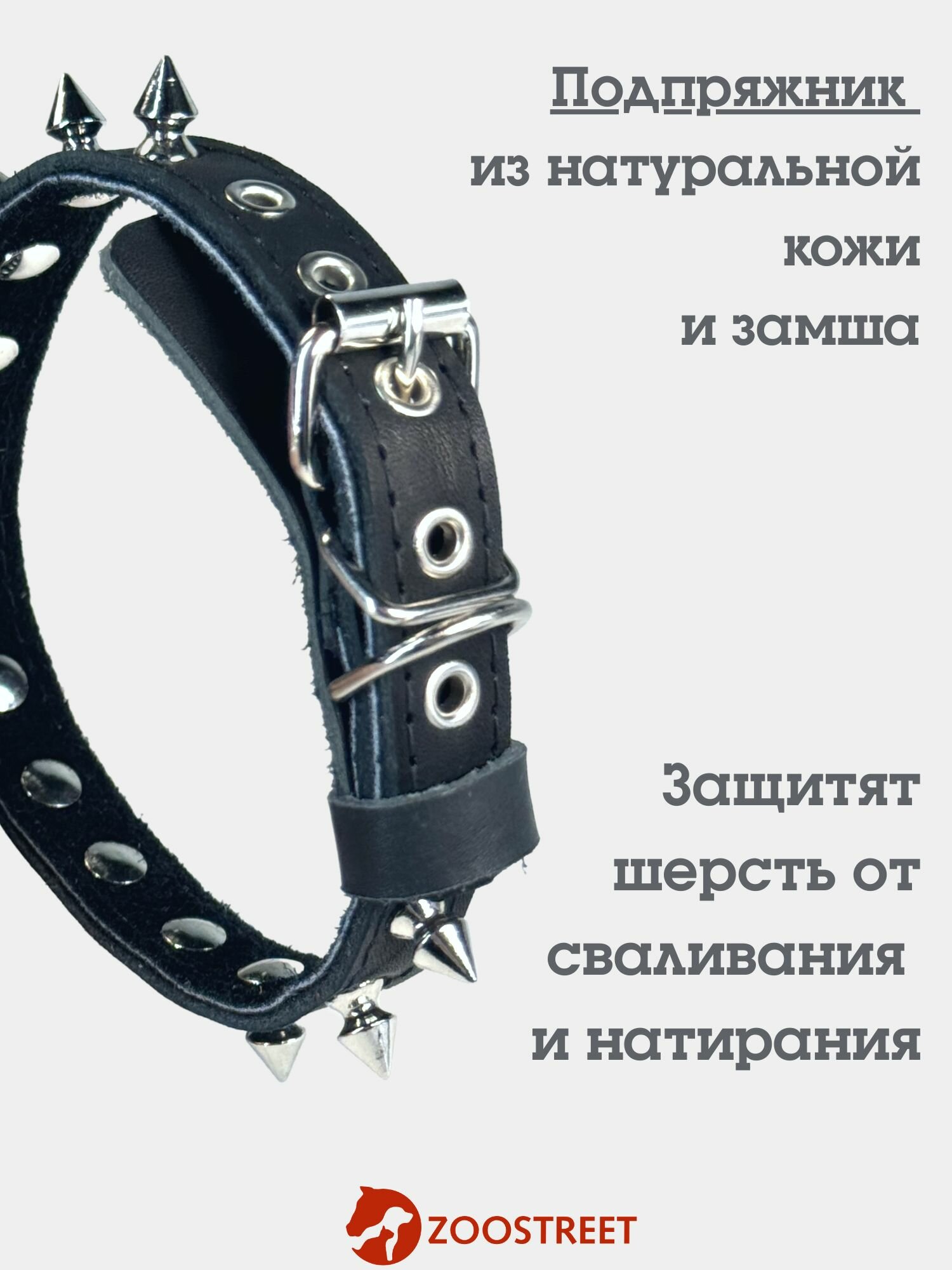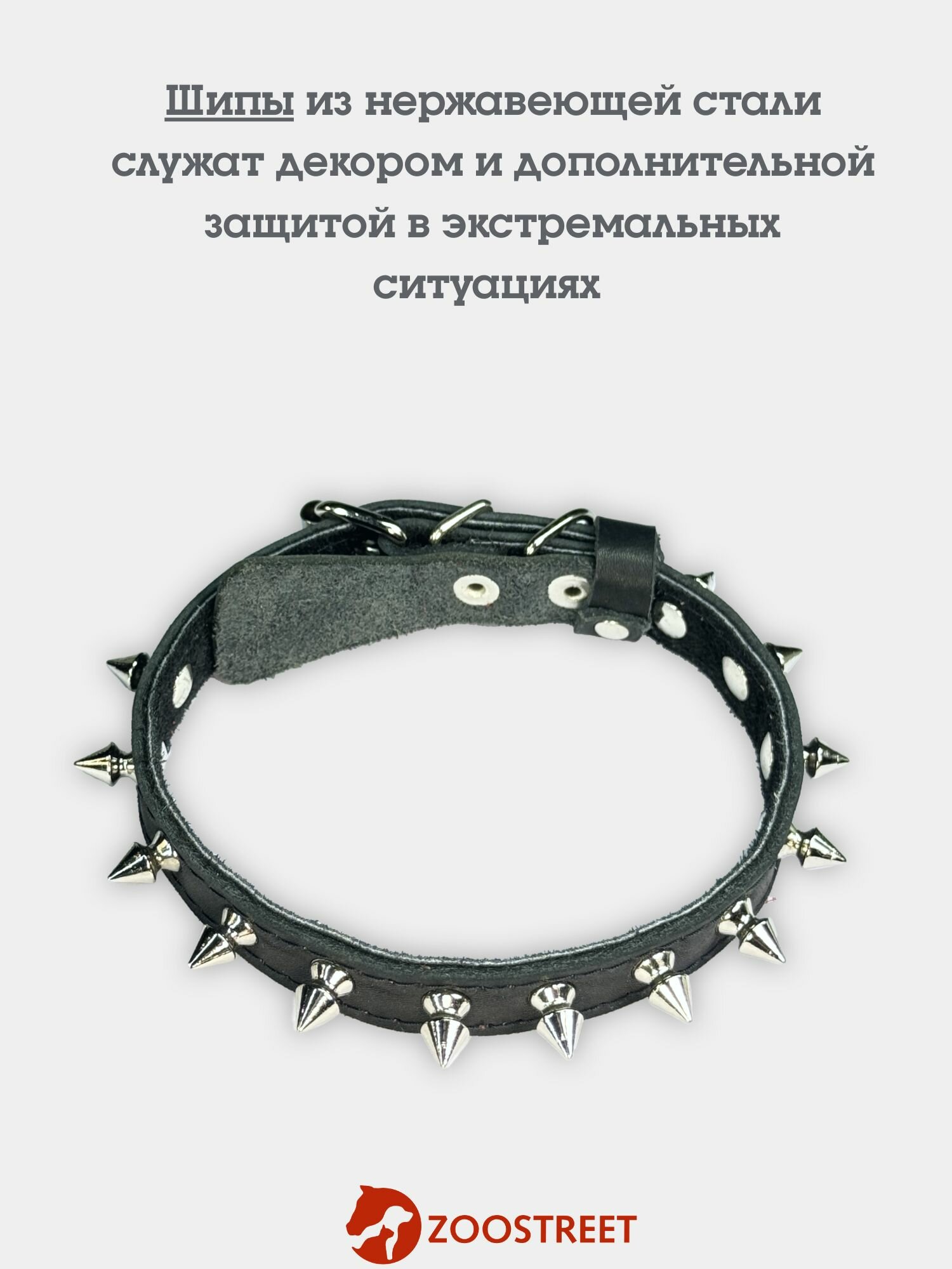 Ошейник для собак мелких и средних пород кожаный с шипами, натуральная кожа, подклад из замши 20мм, 45см, с подпряжником M