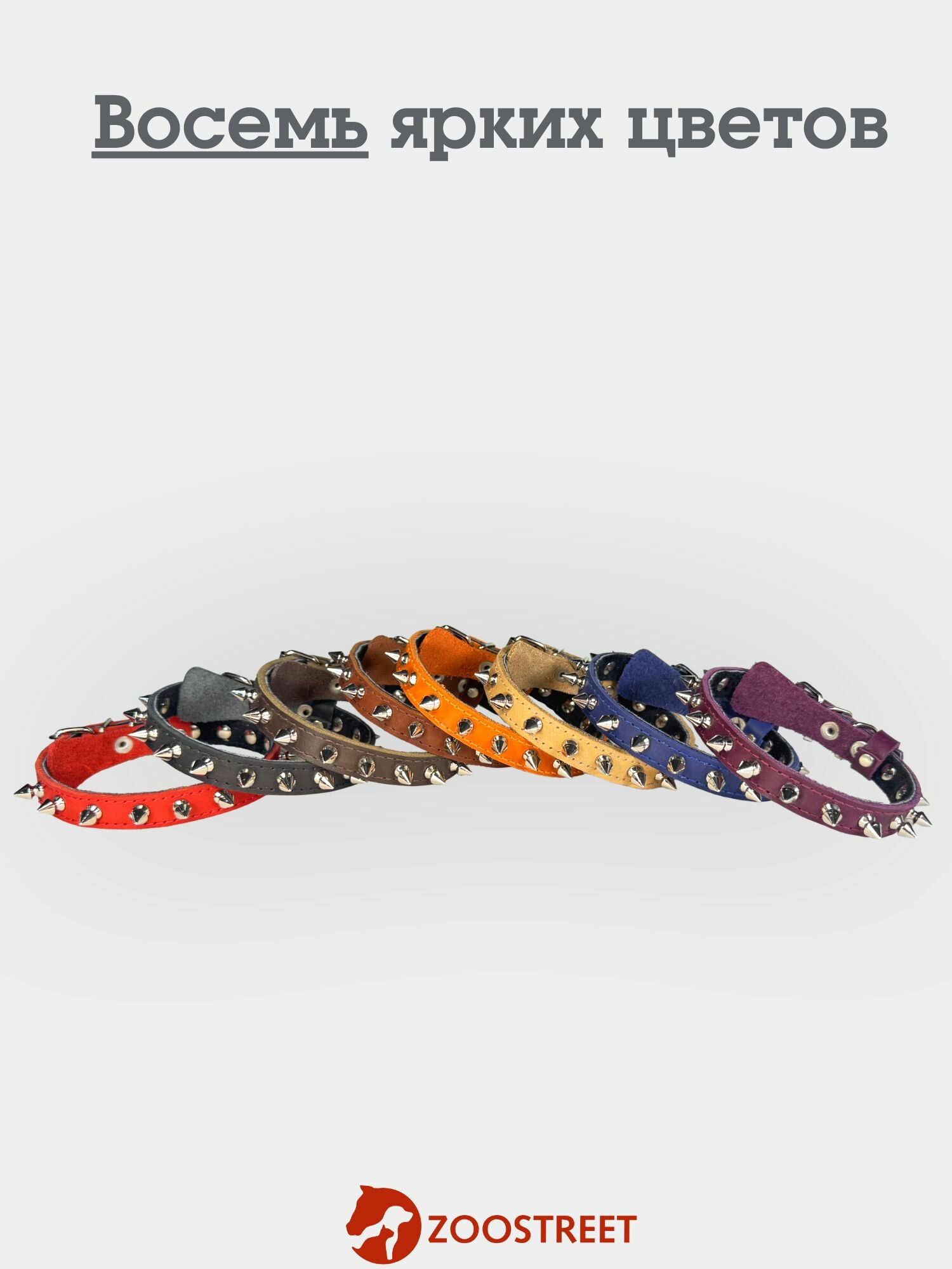 Купить Ошейник для собак мелких пород кожаный с шипами, натуральная кожа, подклад из замши 15мм, 35см, с подпряжником S