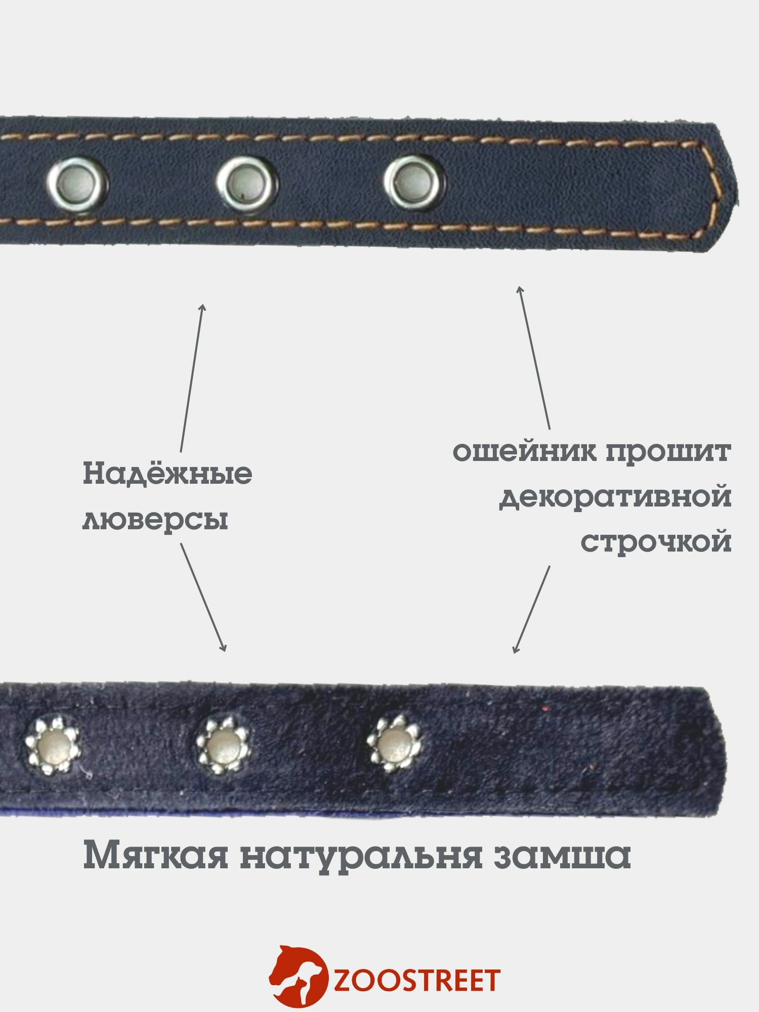 Ошейник для собак мелких пород кожаный с шипами, натуральная кожа, подклад из замши 15мм, 35см, с подпряжником S