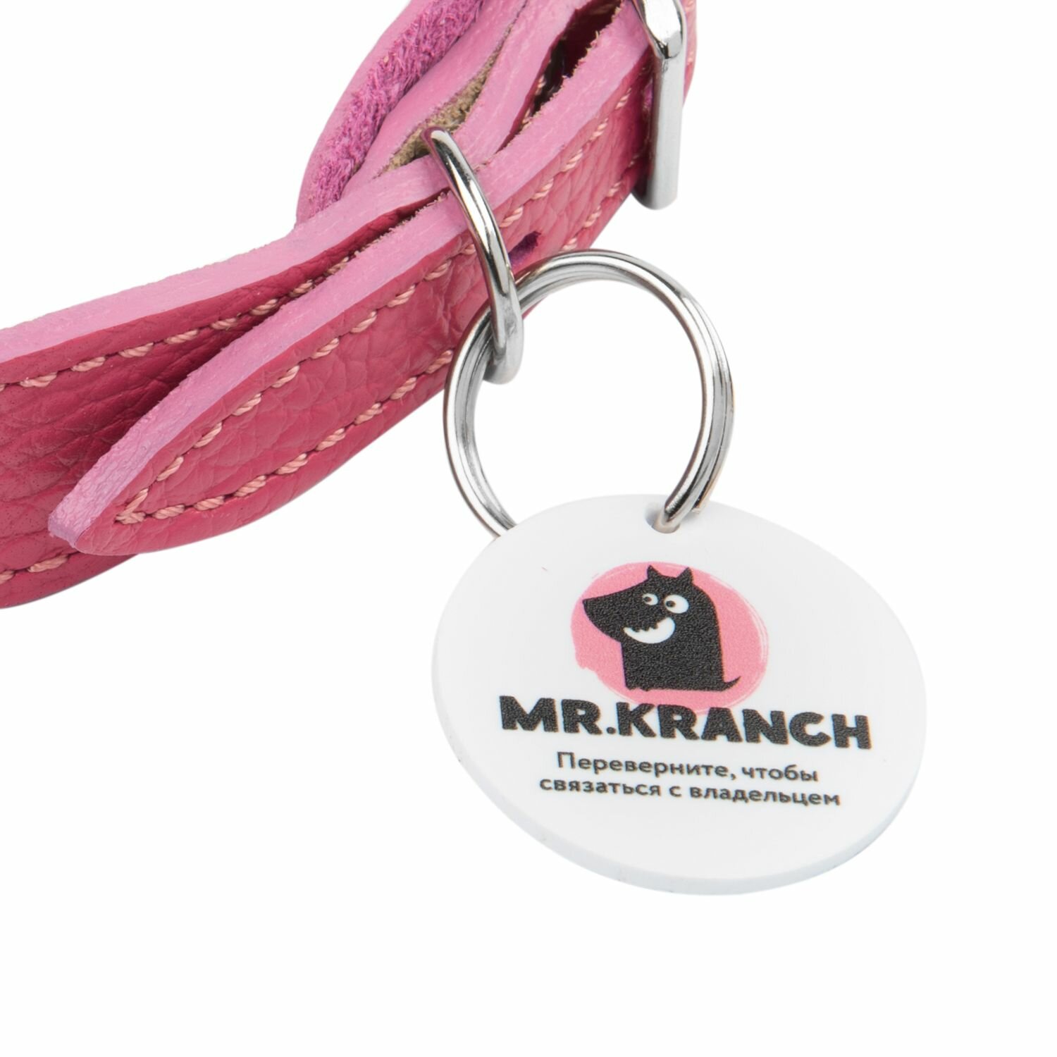 Ошейник Mr.Kranch для собак из натуральной кожи с QR-адресником, 30-35см, розовый VLT-MKR174546
