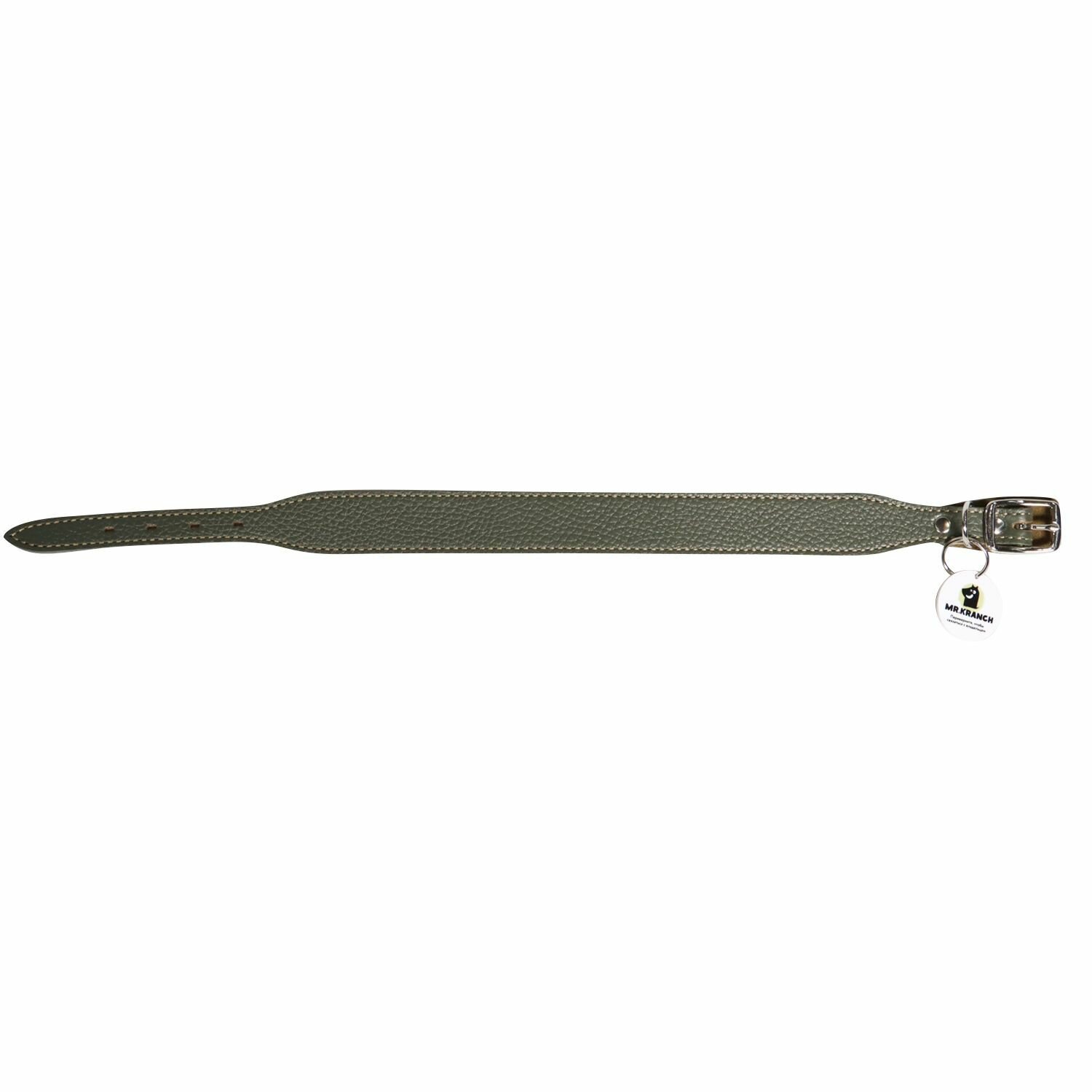 Ошейник Mr.Kranch для собак из натуральной кожи с QR-адресником, 30-35см, оливковый VLT-MKR174669