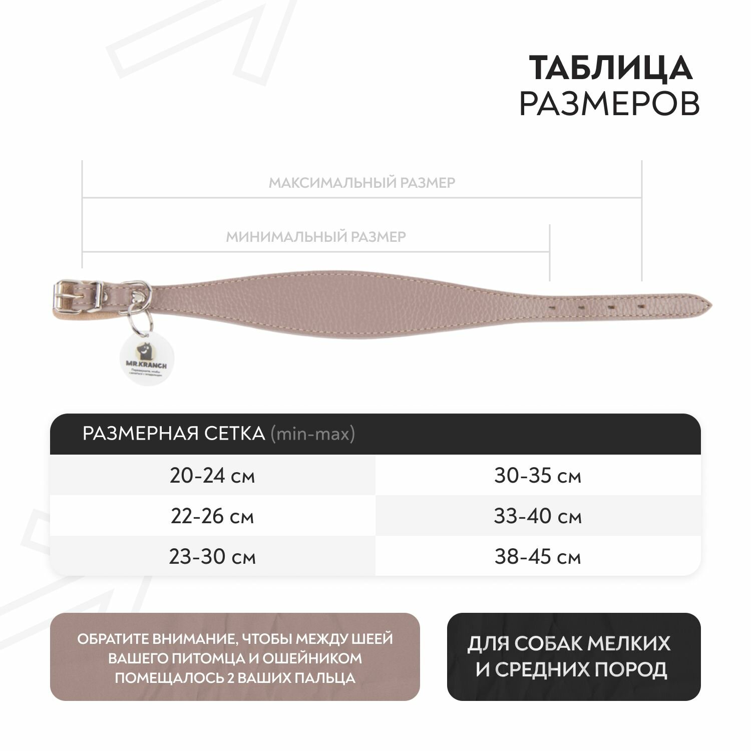 Ошейник Mr.Kranch для собак из натуральной кожи с QR-адресником, 22-26см, бежевый VLT-MKR174706