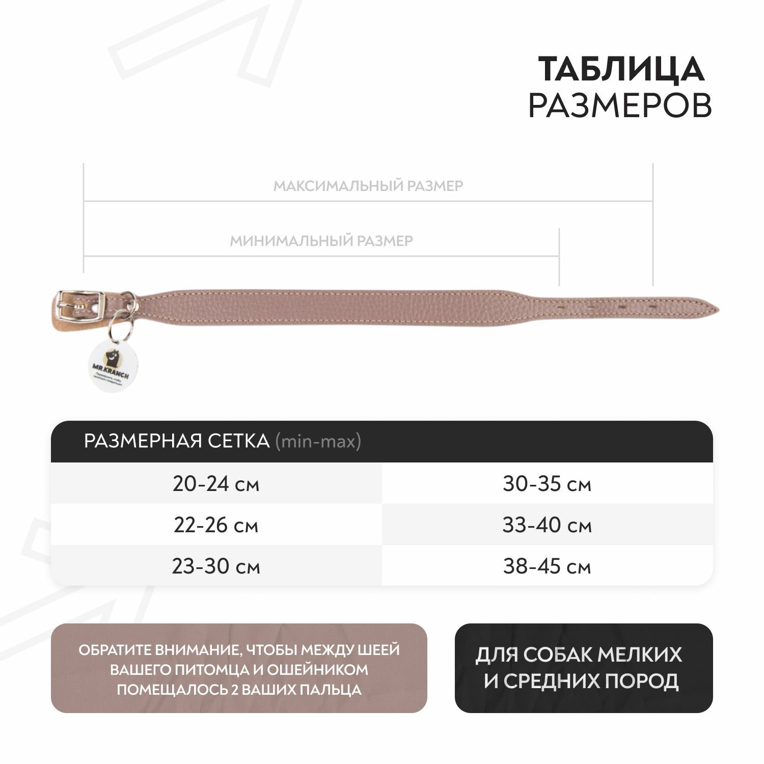 Ошейник Mr.Kranch для собак из натуральной кожи с QR-адресником, 22-26см, бежевый VLT-MKR174706