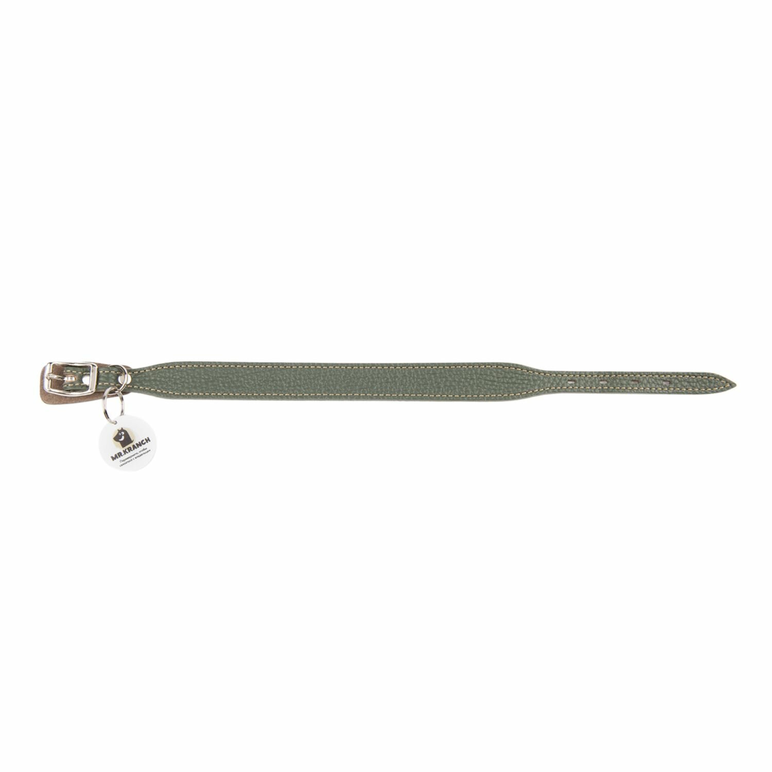 Ошейник Mr.Kranch для собак из натуральной кожи с QR-адресником, 22-26см, оливковый VLT-MKR174645