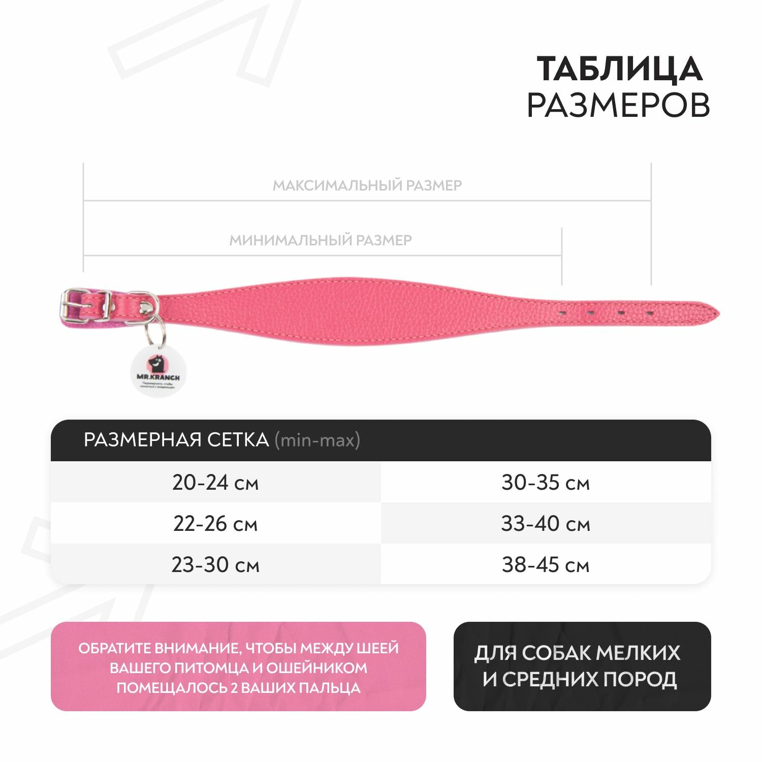 Ошейник-селедка Mr. Kranch для собак с QR-адресником, 21-25см, розовый