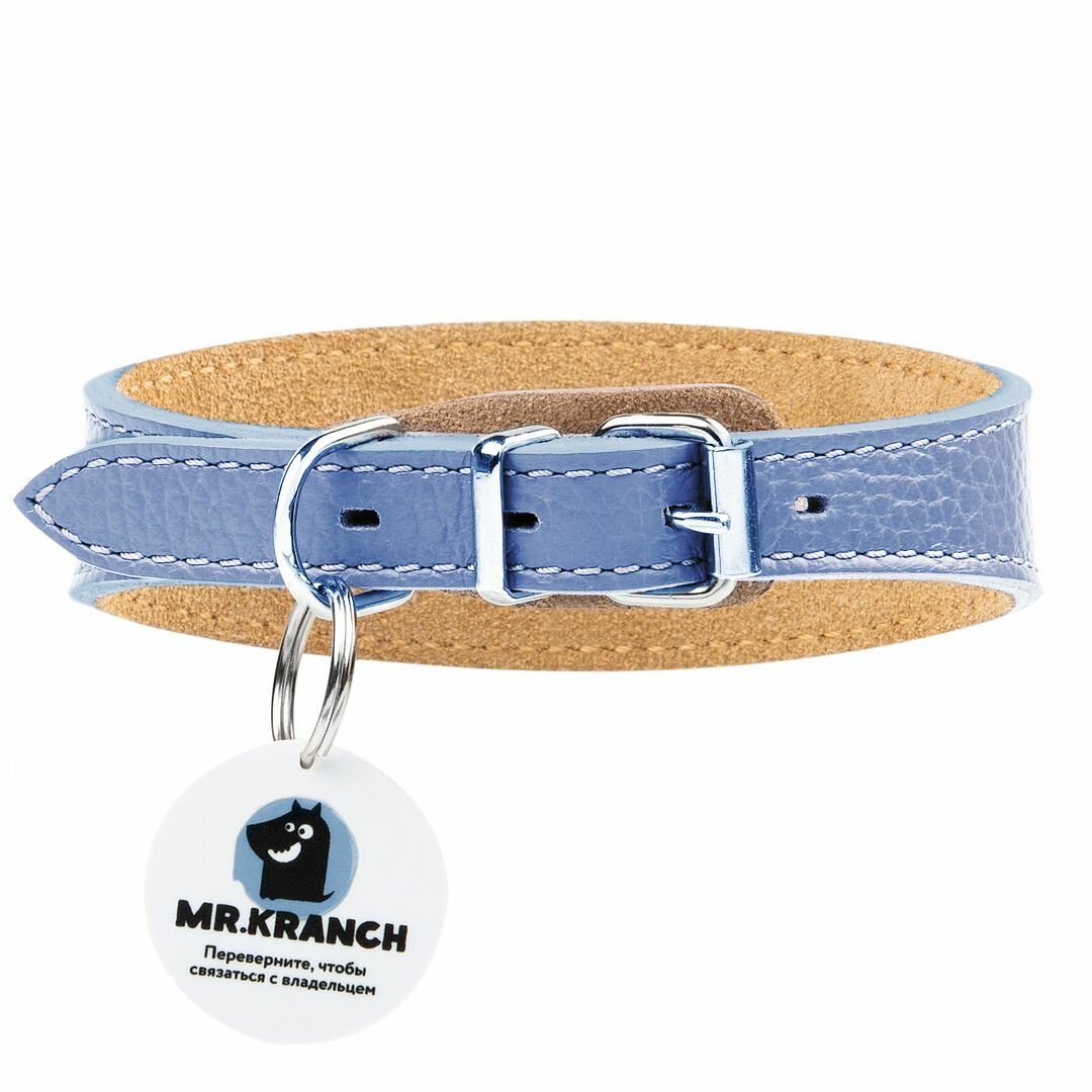 Ошейник Mr. Kranch для собак с QR-адресником, 30-35см, синий