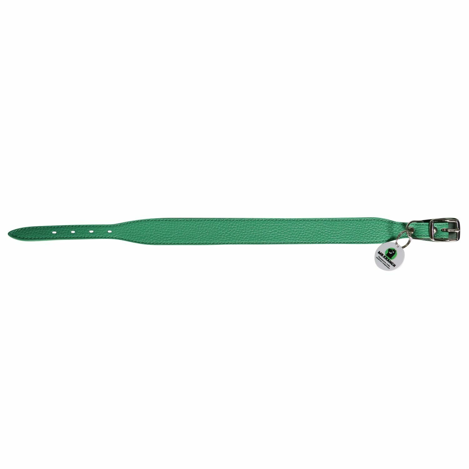 MR.KRANCH Ошейник для собак из натуральной кожи с QR-адресником 33-40см зеленый