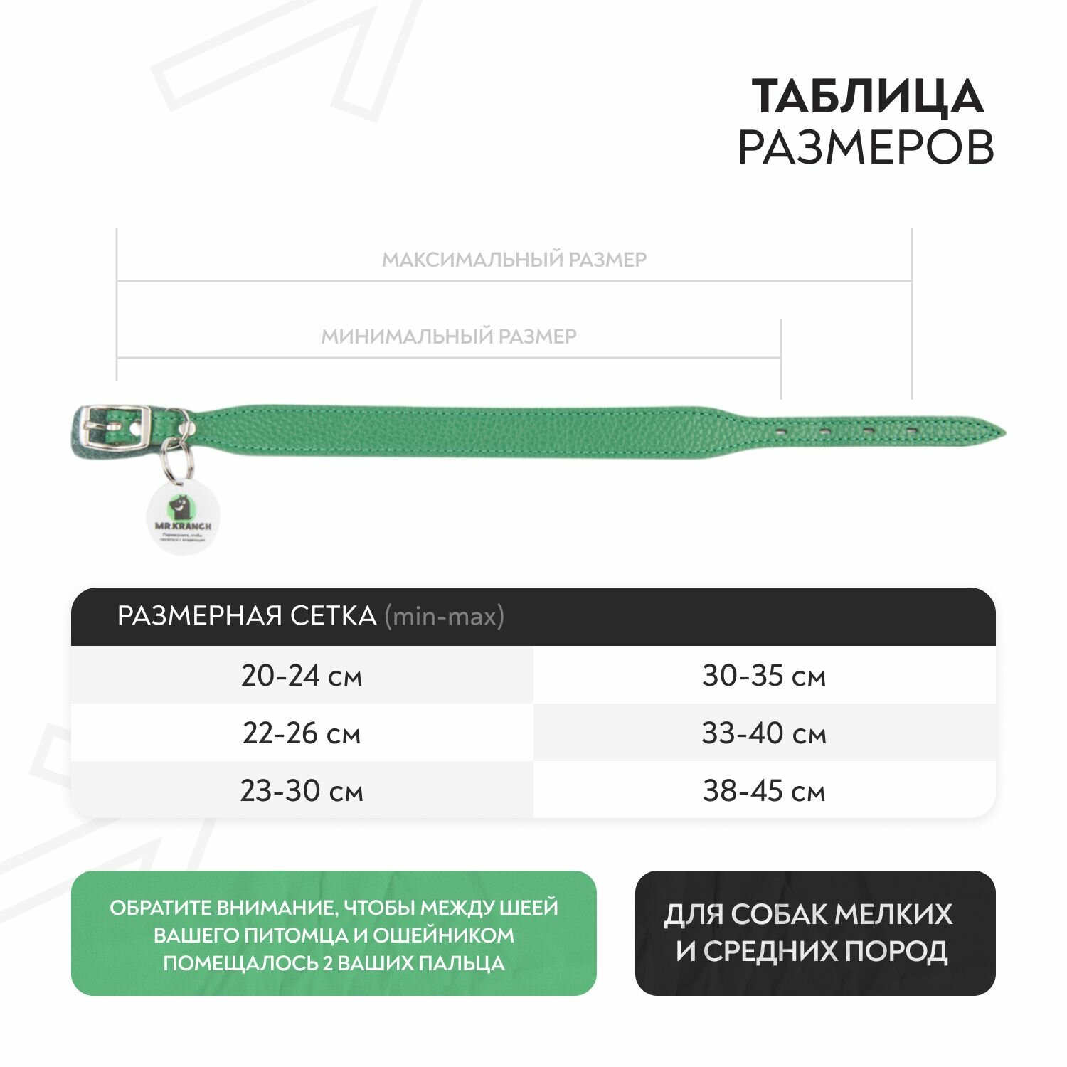 Ошейник Mr.Kranch для собак из натуральной кожи с QR-адресником, 25-30см, зеленый VLT-MKR174591