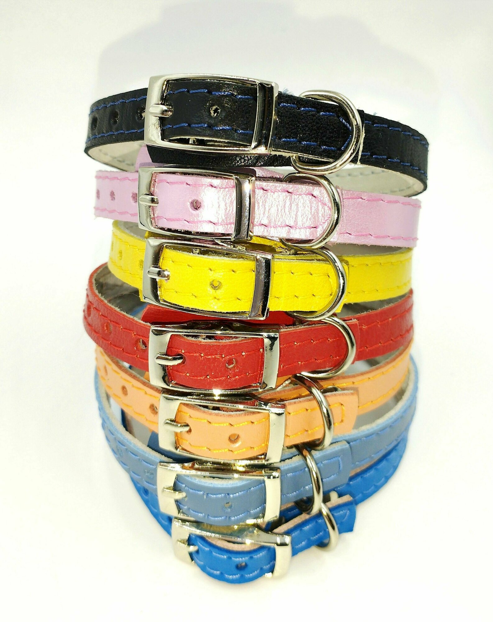 Ошейник из натуральной итальянской кожи для очень мелких пород собак, кошек и щенков, котят. Ширина 10 мм, длина 30 см, объём 20-26