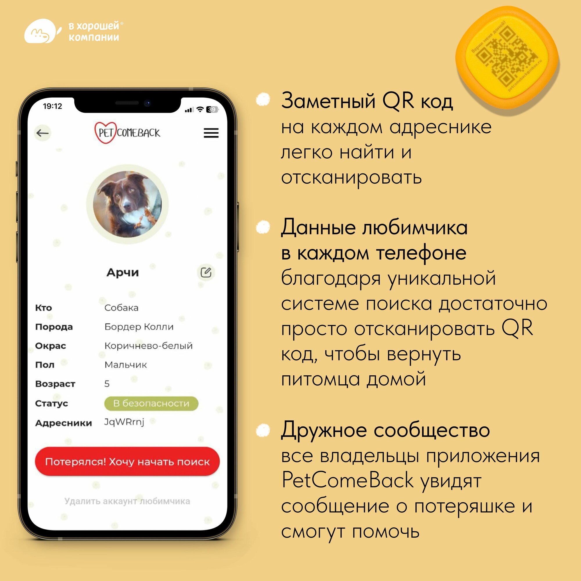 СохранитьВодонепроницаемый ошейник с адресником для собак мелких пород IN GOOD COMPANY (S / желтый / неотан) интересное: