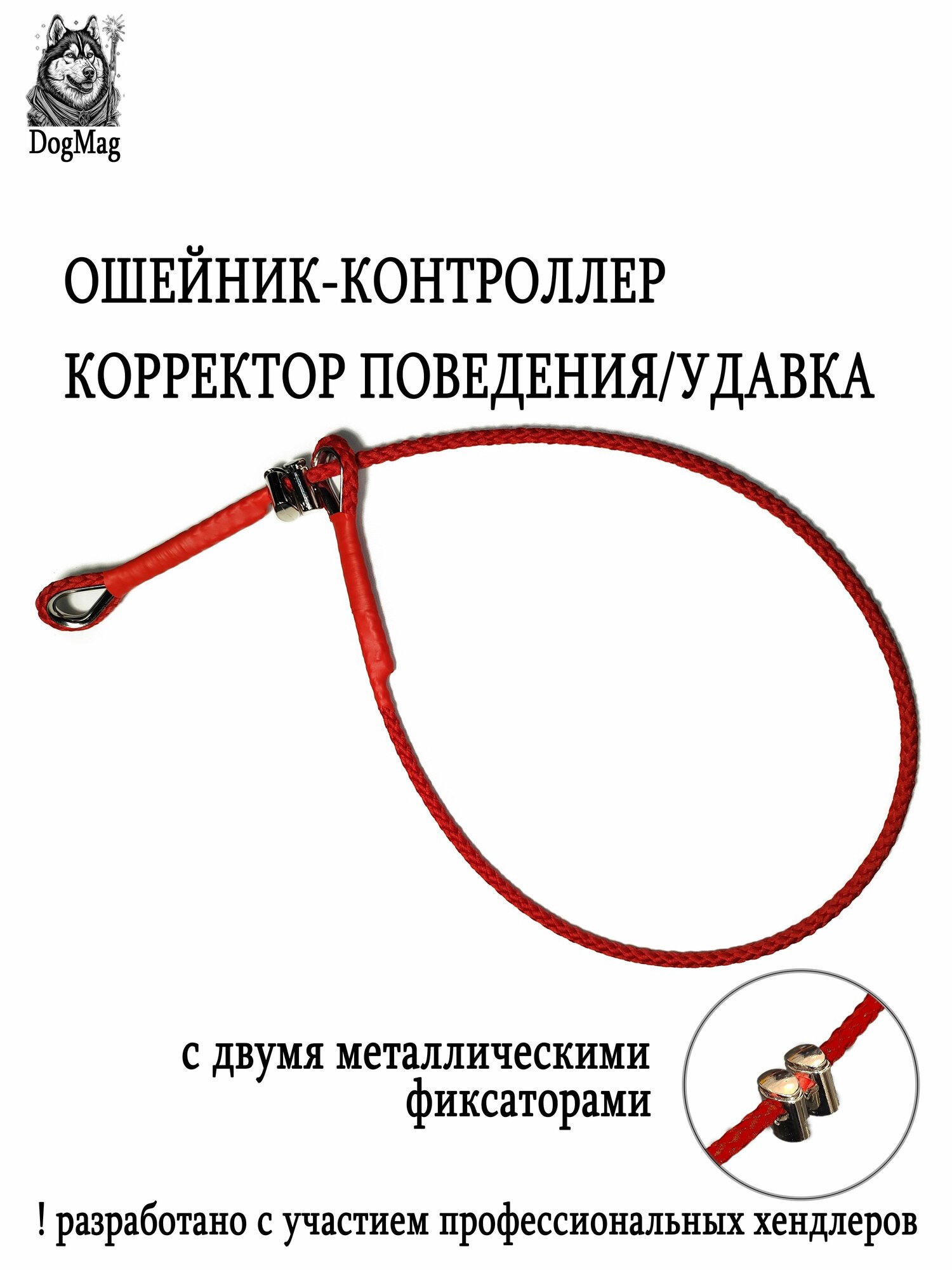 Ошейник контроллер, удавка, корректор поведения, стальной сердечник, 2 стальных стопора, премиум, красный, до 65см