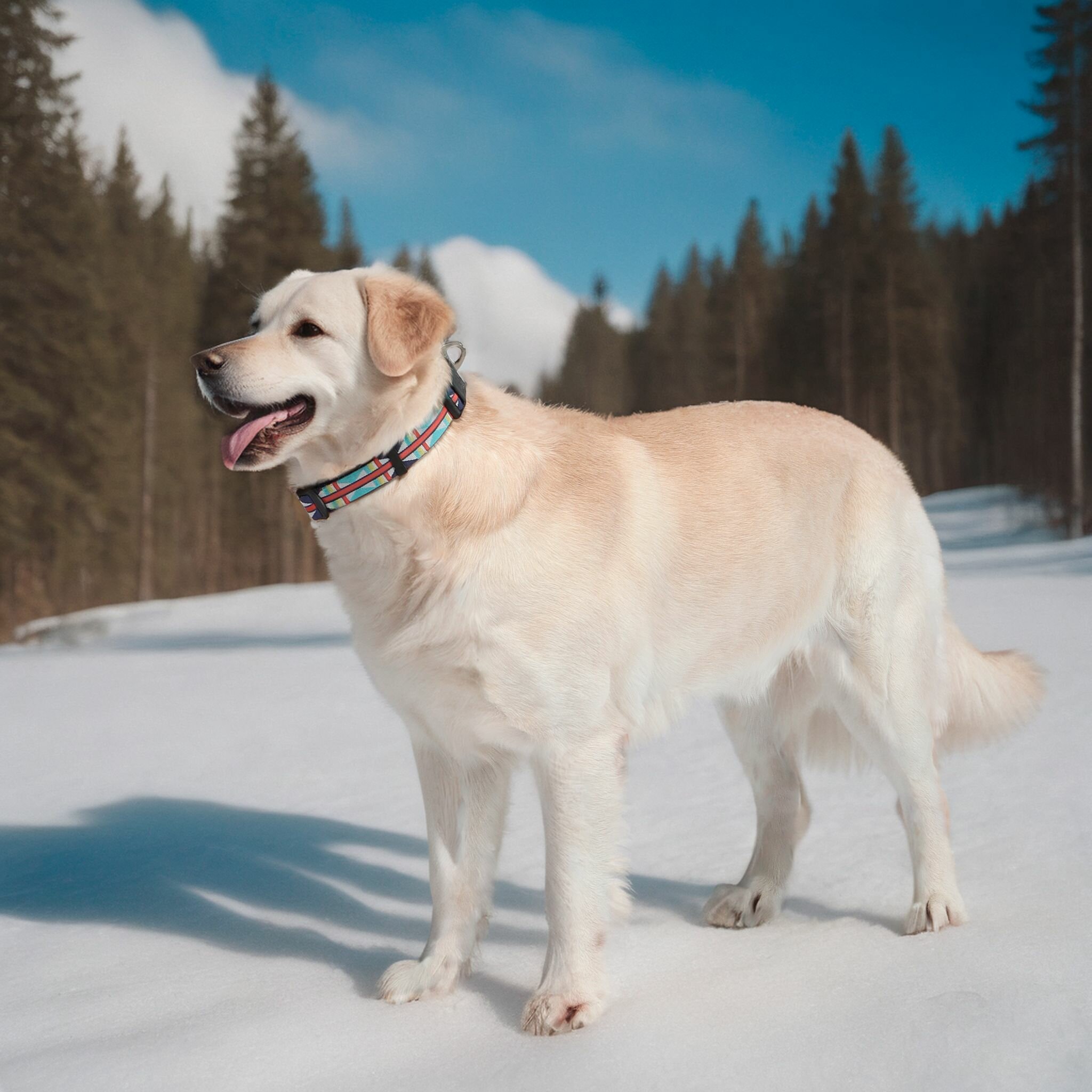 Ошейник для собак средних и крупных пород, синий с орнаментом, 45-65 см