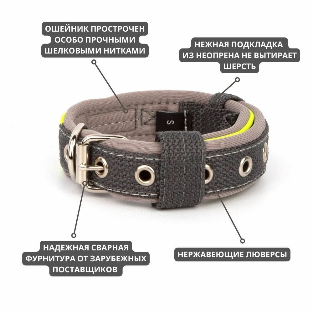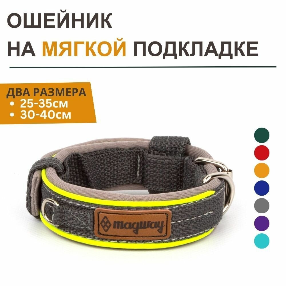 Ошейник для небольших пород MagWay широкий 2,5см, мягкий, для щенков и взрослых, обхват шеи 30-40см, цвет серый
