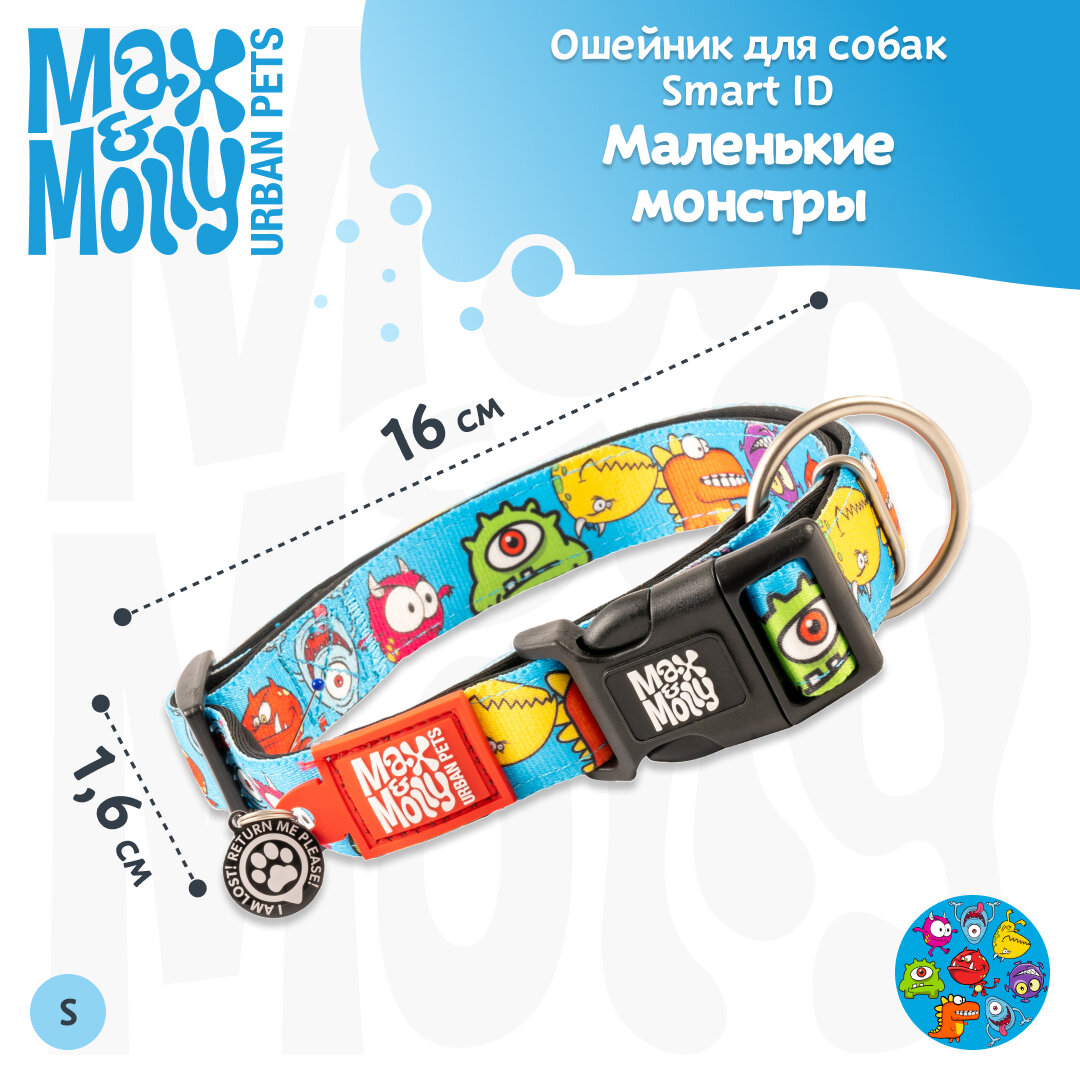 Ошейник для собак Smart ID, размер S, Маленькие монстры Max & Molly интересное: