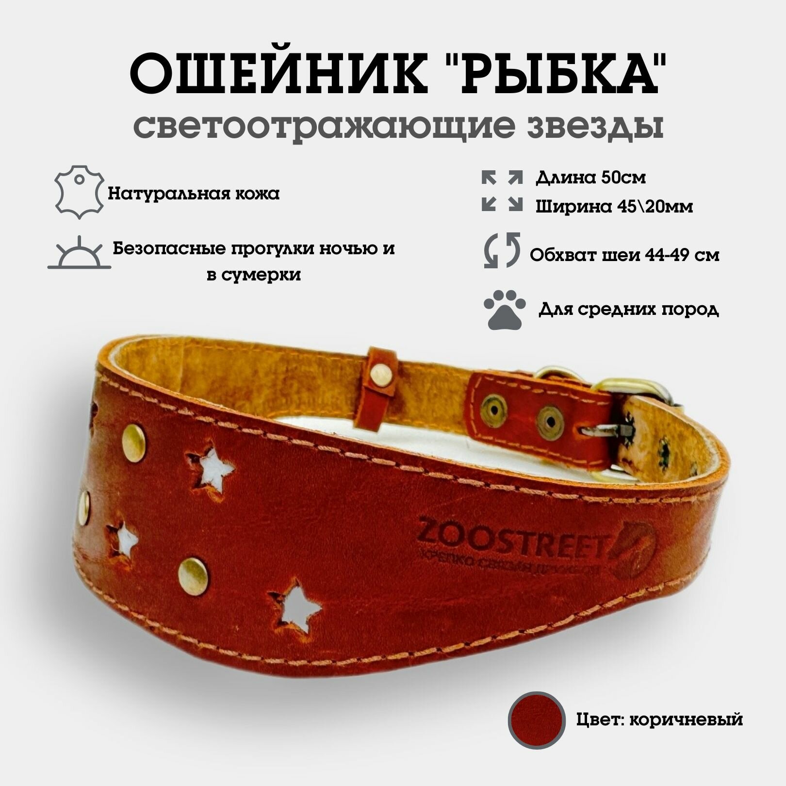 Ошейник селедка из натуральной кожи и кожподклада, украшение "Светоотражающие звёздочки" интересное: