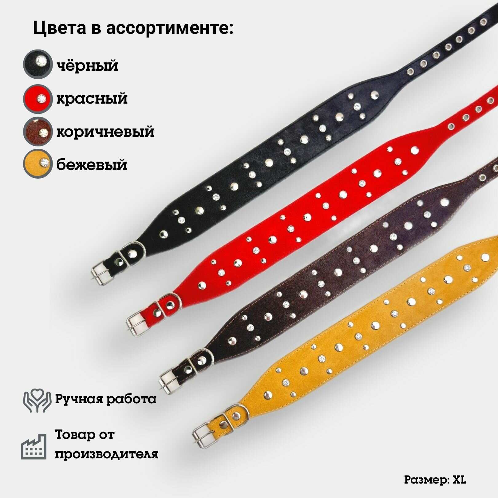 Ошейник "Селедка со стразами" из натуральной кожи и ватина XL интересное: