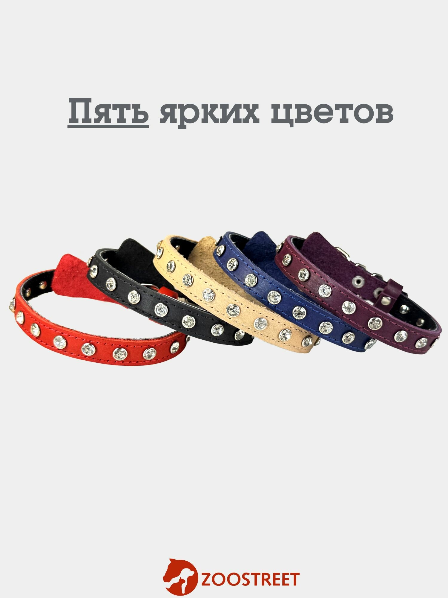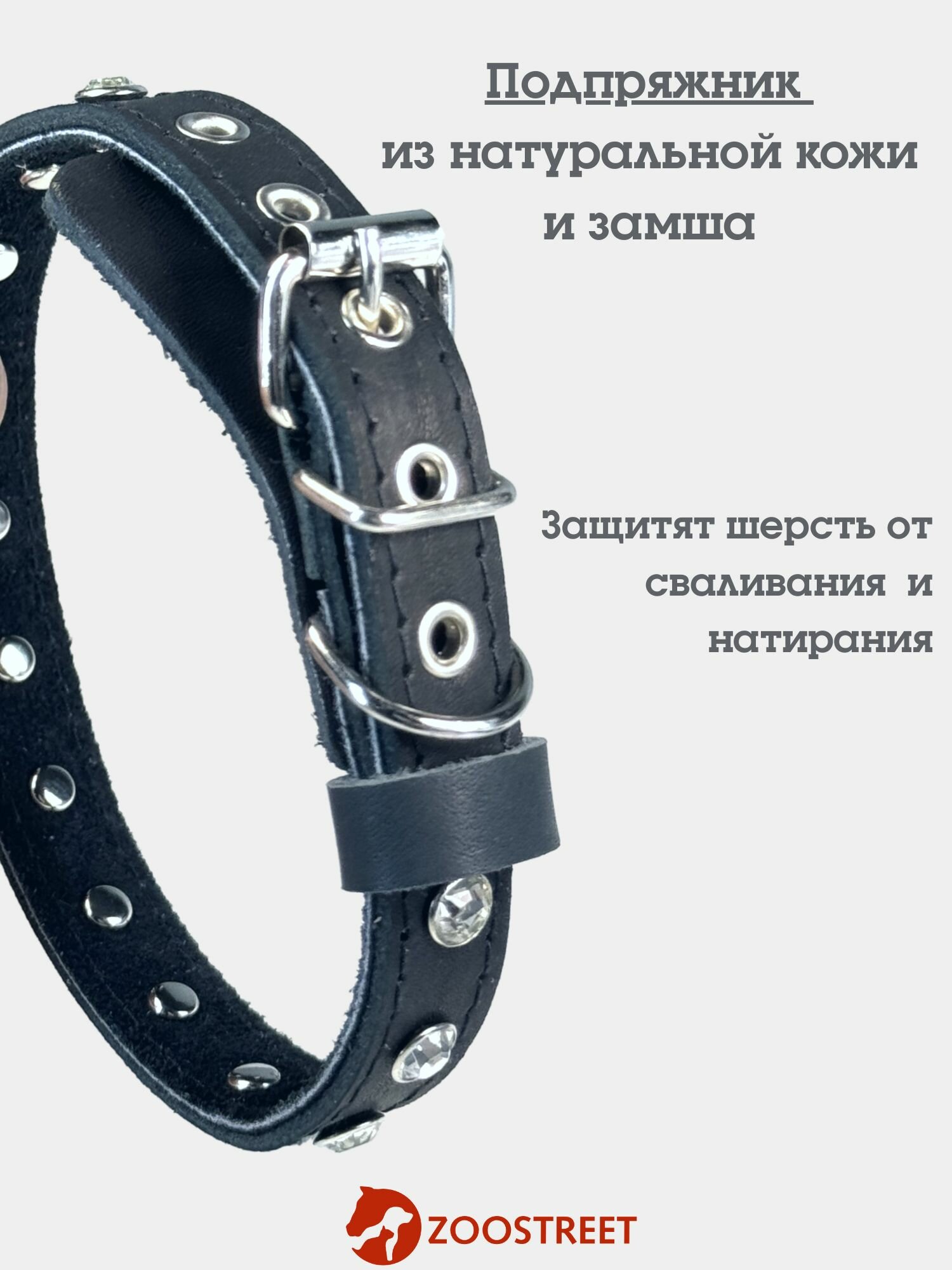 Купить Ошейник со стразами для собак мелких пород и кошек кожаный, с подкладом из натуральной замши 15мм, 35см, с подпряжником S