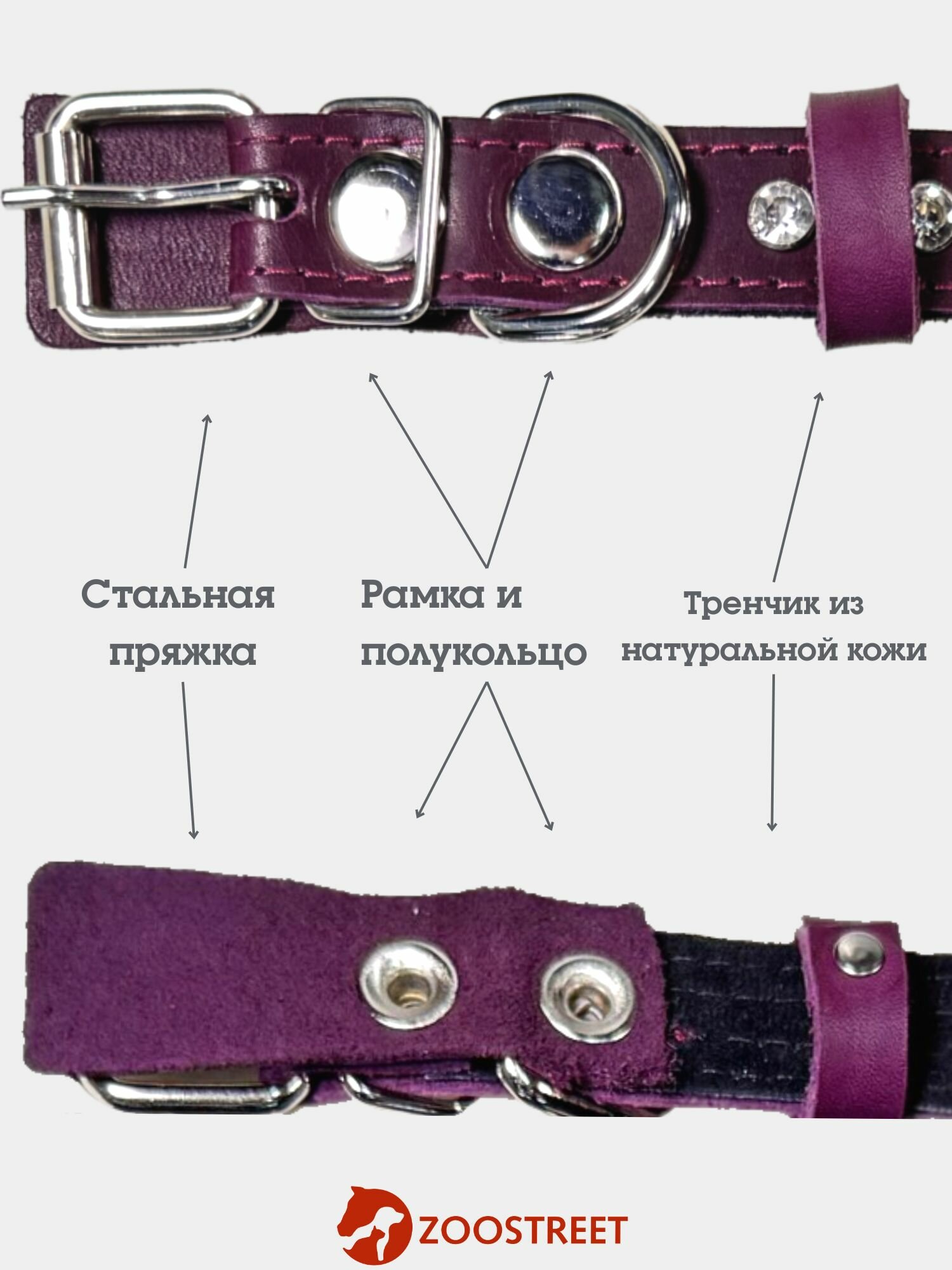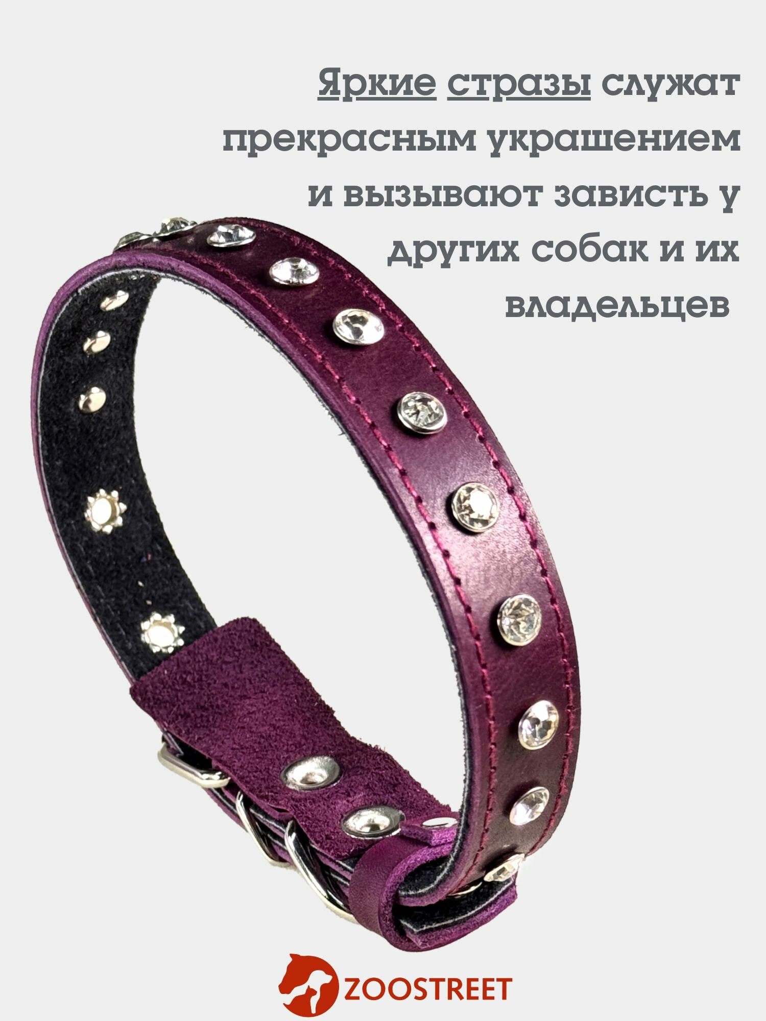 Ошейник со стразами для собак средних пород кожаный, натуральная кожа и замша 25мм, 50см, с подпряжником L интересное: