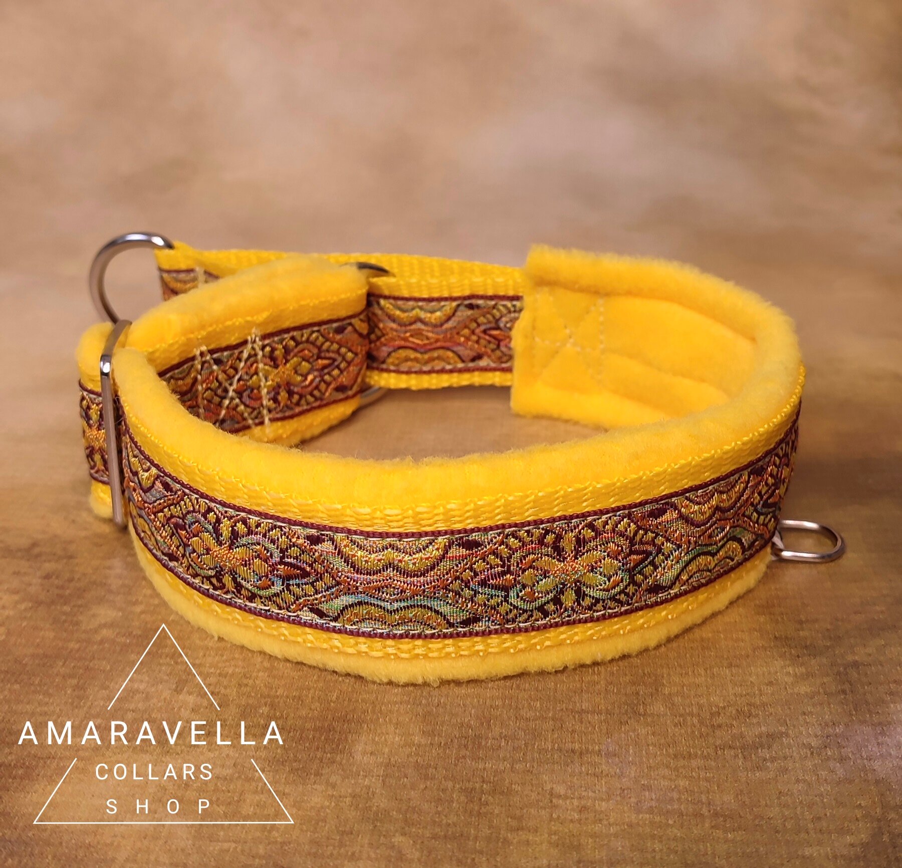 Желтый ошейник с восточным узором XXL для собак полуудавка "Мартингейл" ручной работы, ошейник для собак