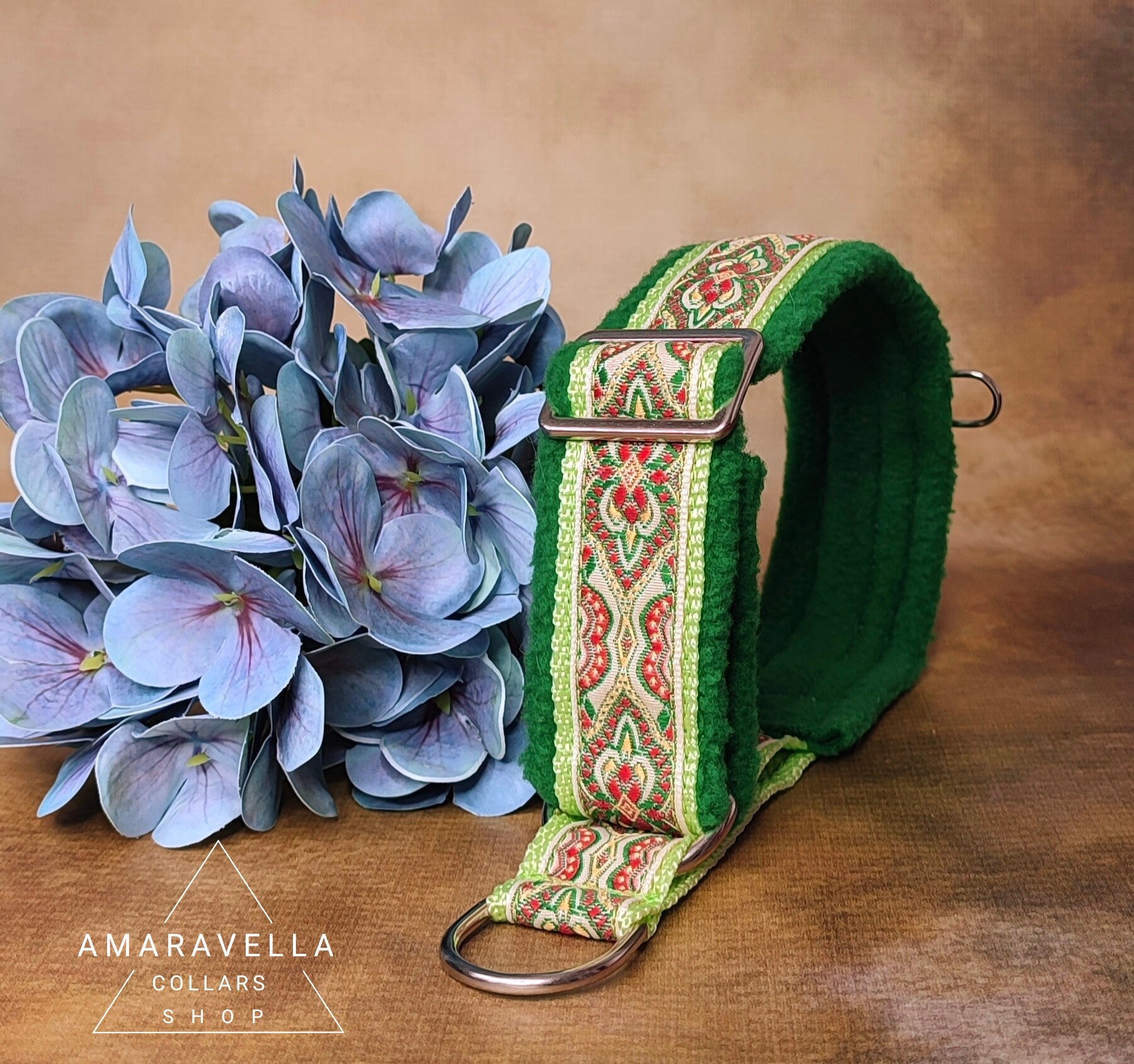 Купить Зеленый ошейник с восточным узором XS для собак полуудавка "Мартингейл" ручной работы, ошейник для собак