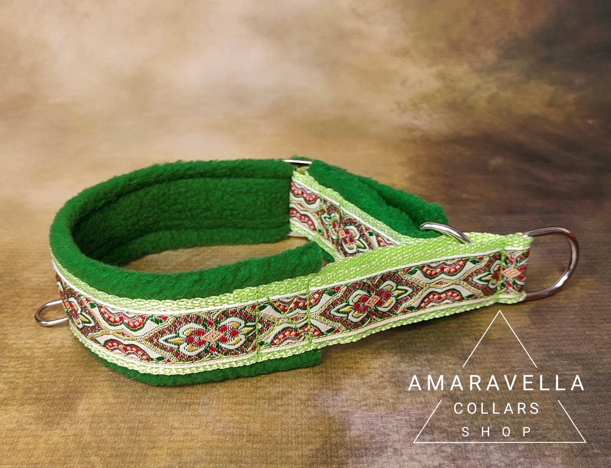 Зеленый яркий ошейник с восточным узором S для собак полуудавка "Мартингейл" ручной работы, ошейник для собак