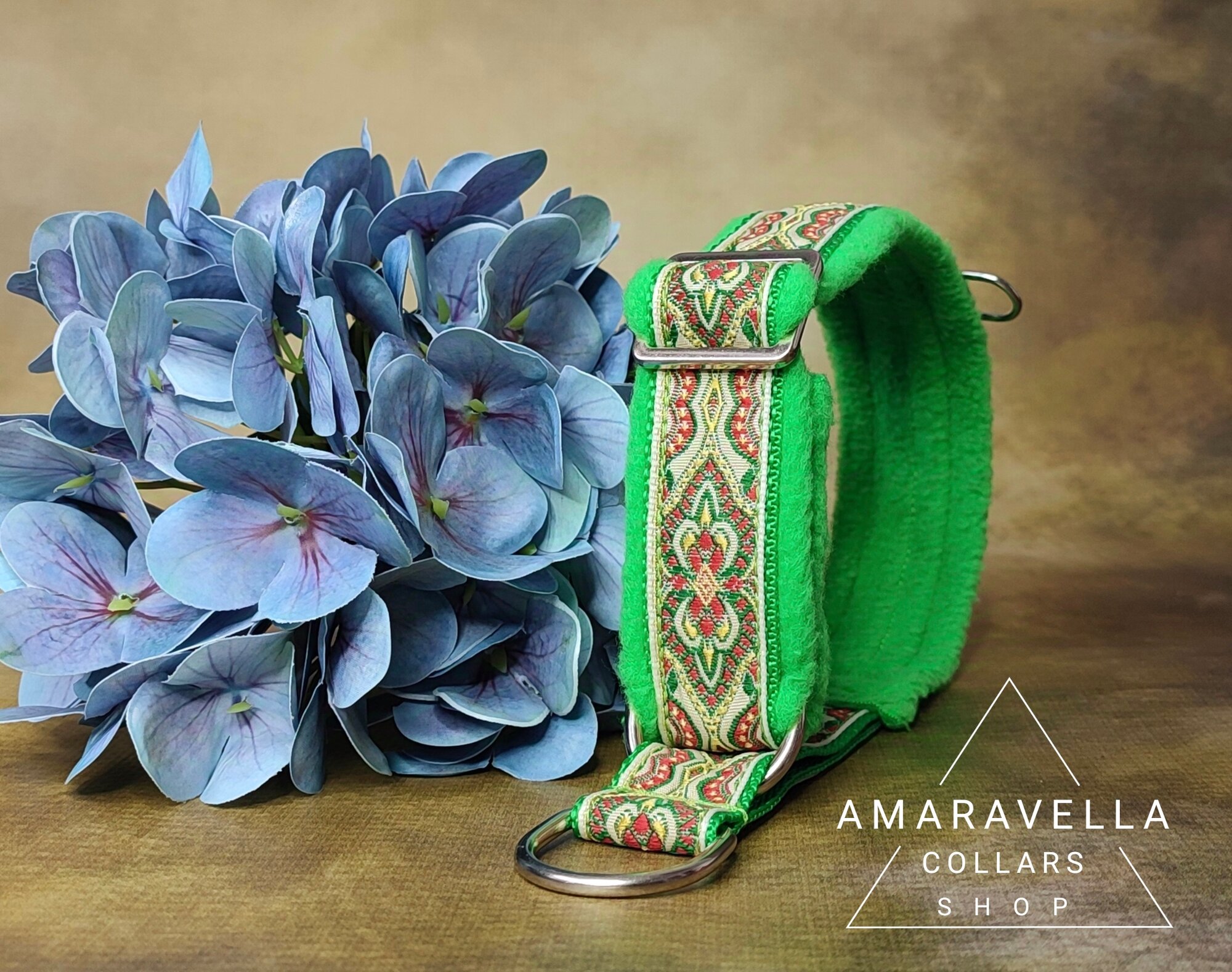 Купить Зеленый яркий ошейник с восточным узором S для собак полуудавка "Мартингейл" ручной работы, ошейник для собак