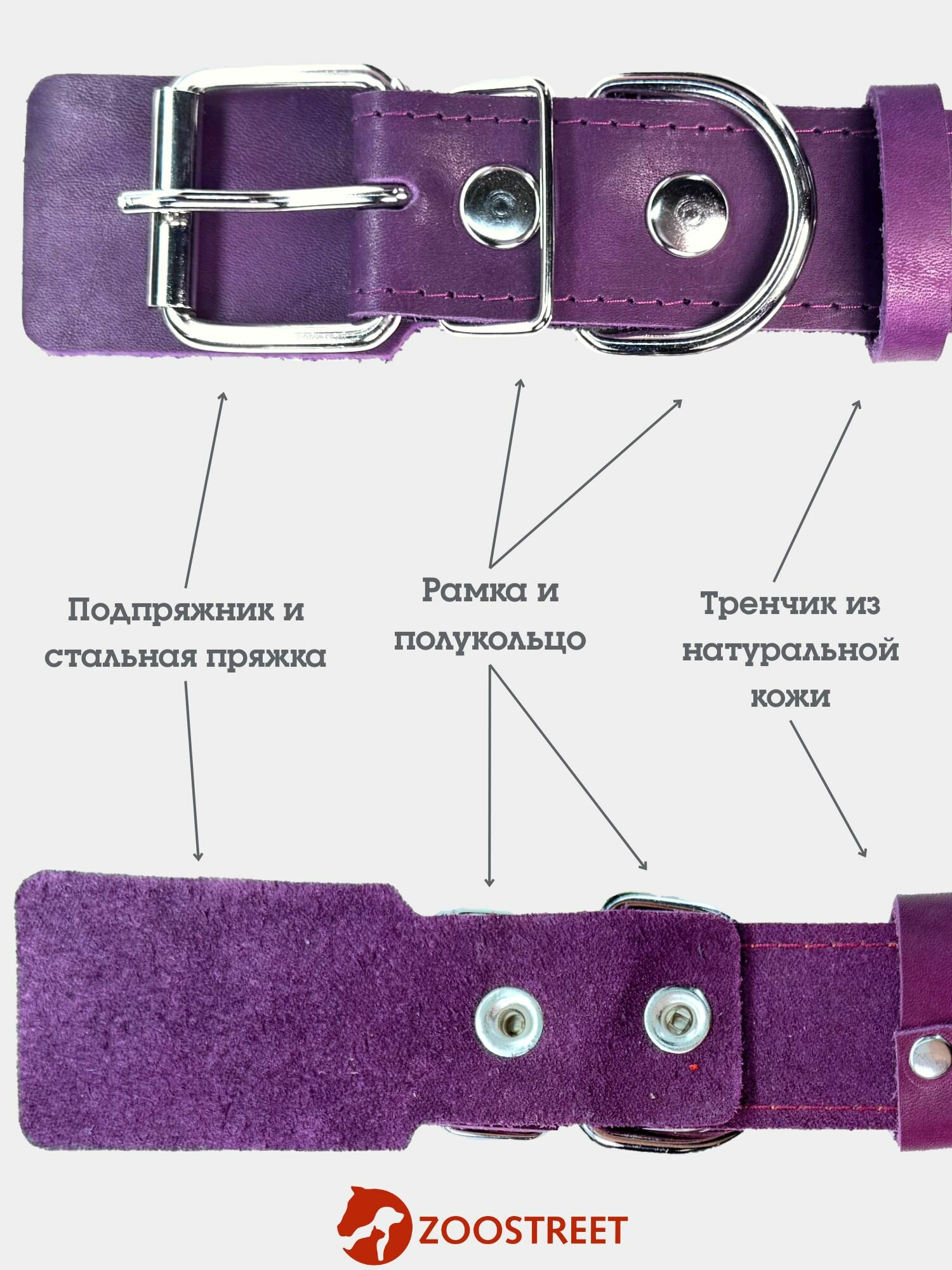 Ошейник для собак средних пород кожаный, однослойный, 35мм, 65см, с подпряжником XL интересное: