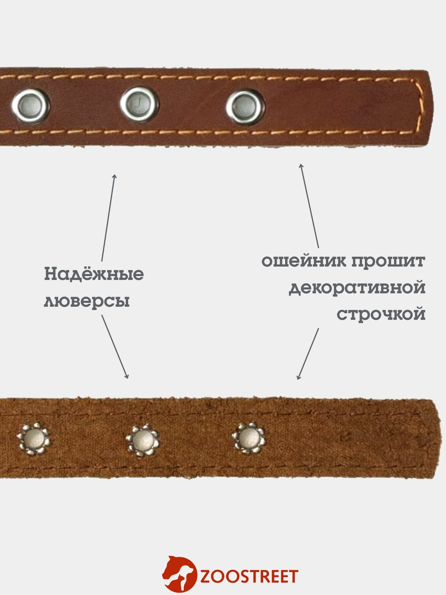 Ошейник для собак средних пород кожаный, однослойный, 25мм, 50см, с подпряжником L интересное: