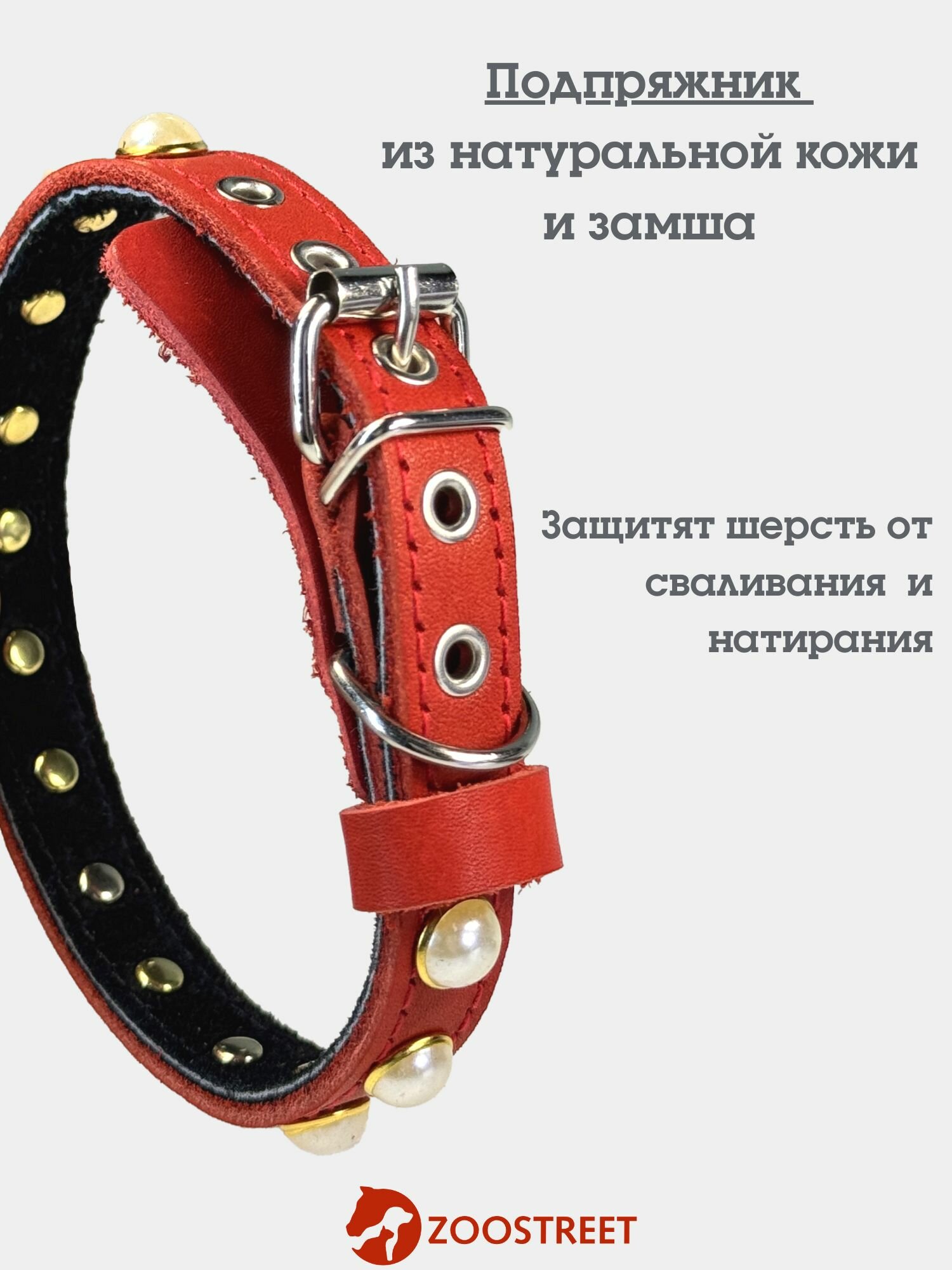 Ошейник для собак мелких пород кожаный, с жемчугом и подкладом из натуральной замши 15мм, 35см, с подпряжником S интересное: