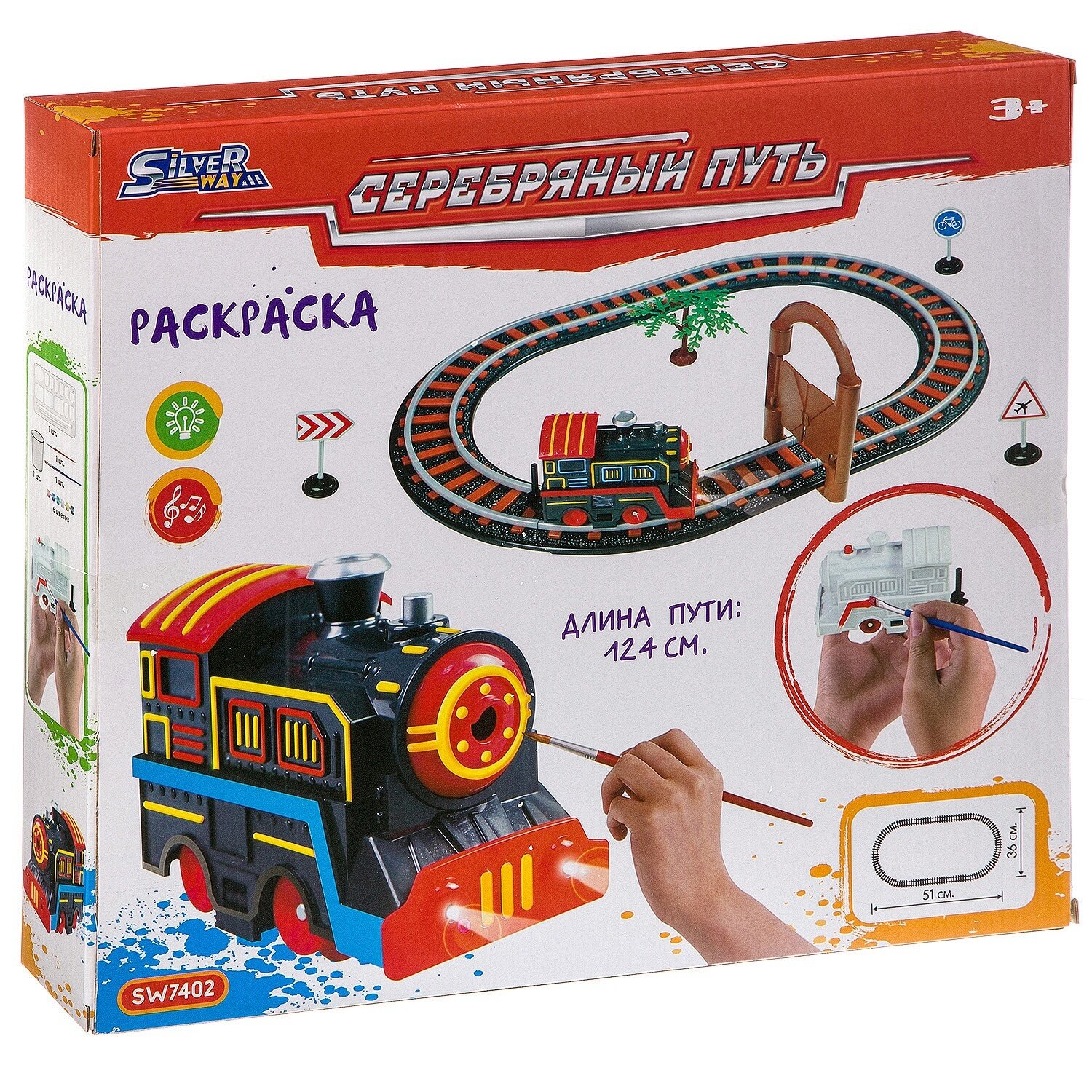 Купить Железная дорога "Серебряный путь" с одним паровозом под раскраску ( акрил. краски, кисточка, стакан