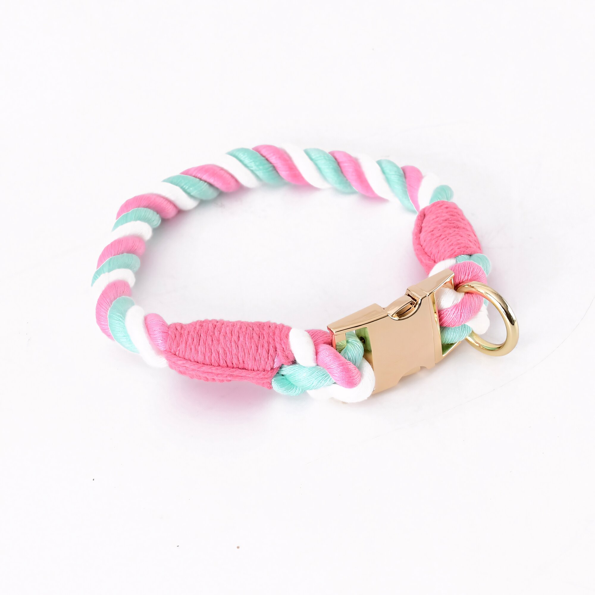 Ошейник и поводок для собак "Anti-lost" хлопковый плетеный с металлической фурнитурой XL/150 см, цвет единорог