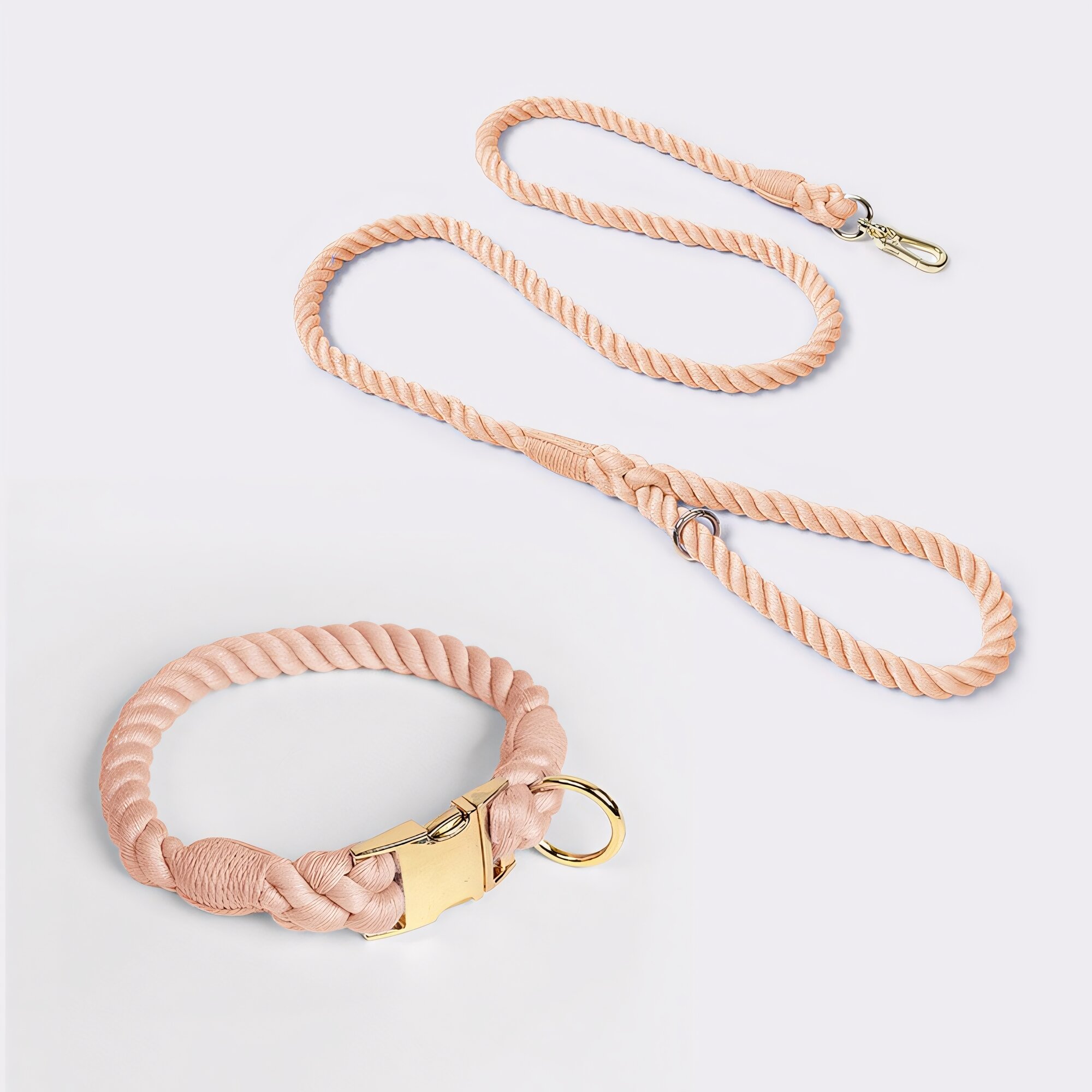 Ошейник и поводок для собак "Anti-lost" хлопковый плетеный с металлической фурнитурой XL/150 см, пудровый