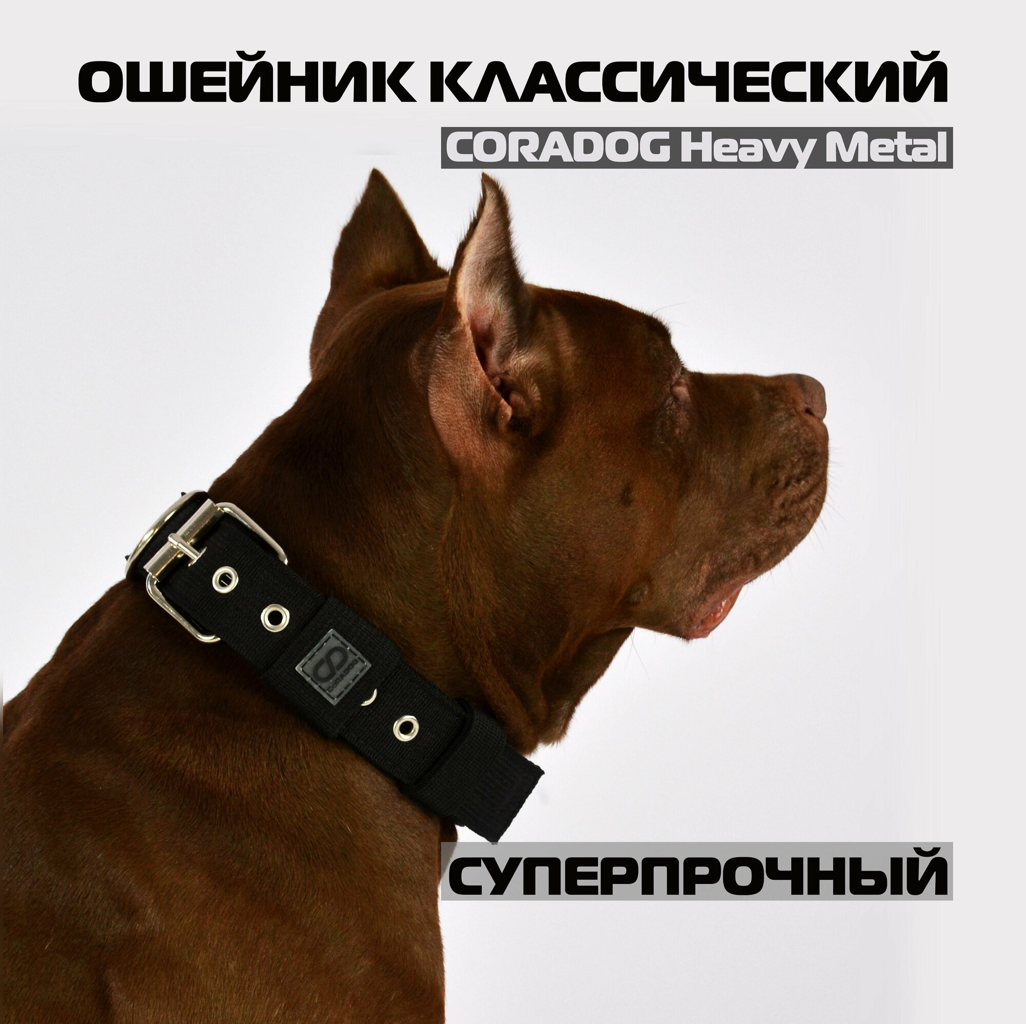 Ошейник высокопрочный, CORADOG Heavy Metal, для средних и крупных собак, черный, размер L 50-62 см
