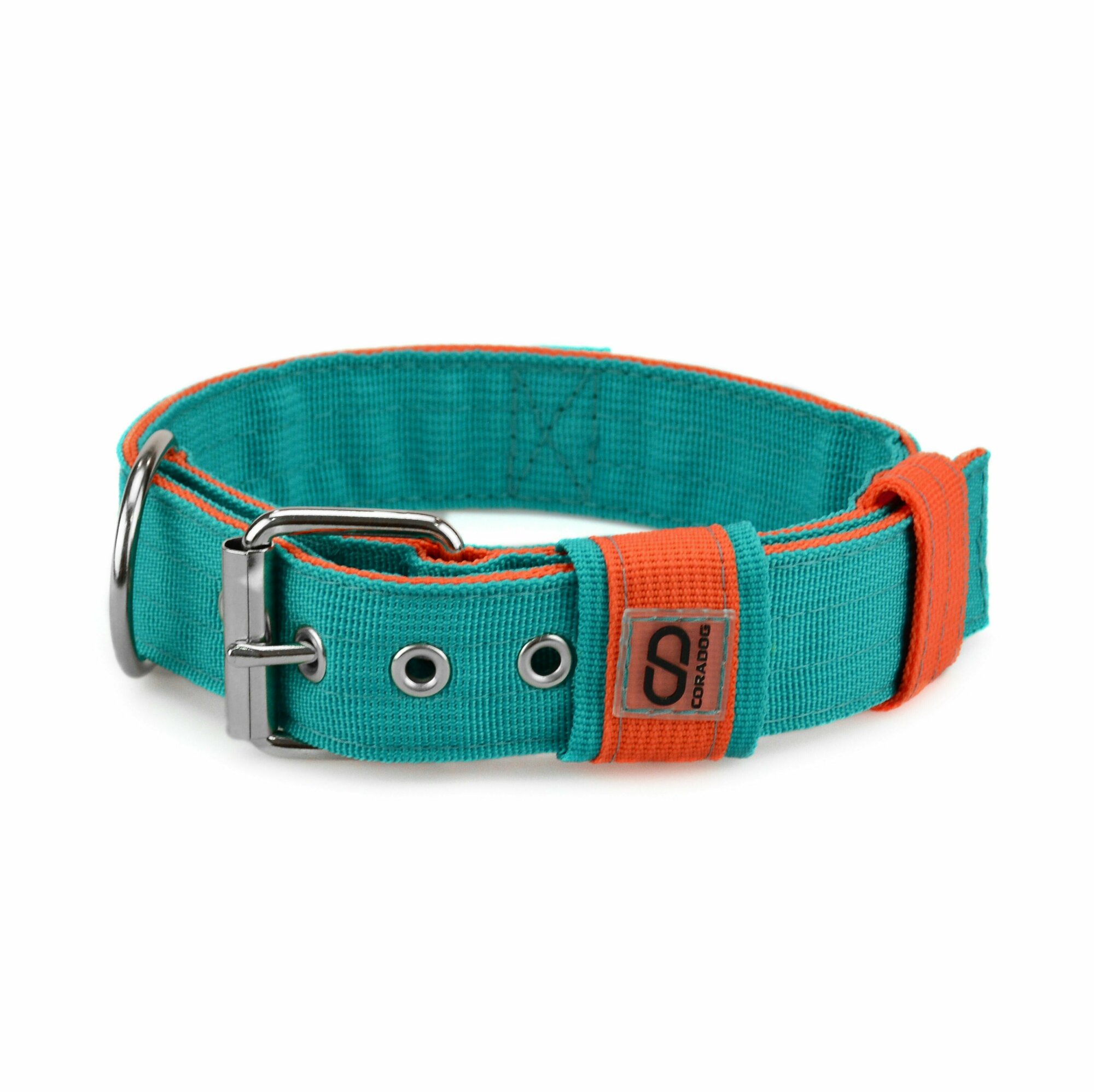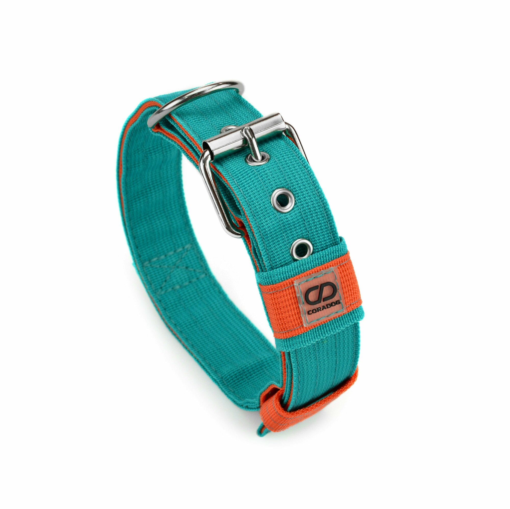 Ошейник высокопрочный, CORADOG Heavy Metal, для средних и крупных собак, бирюзовый, оранжевый, размер L 50-62 см