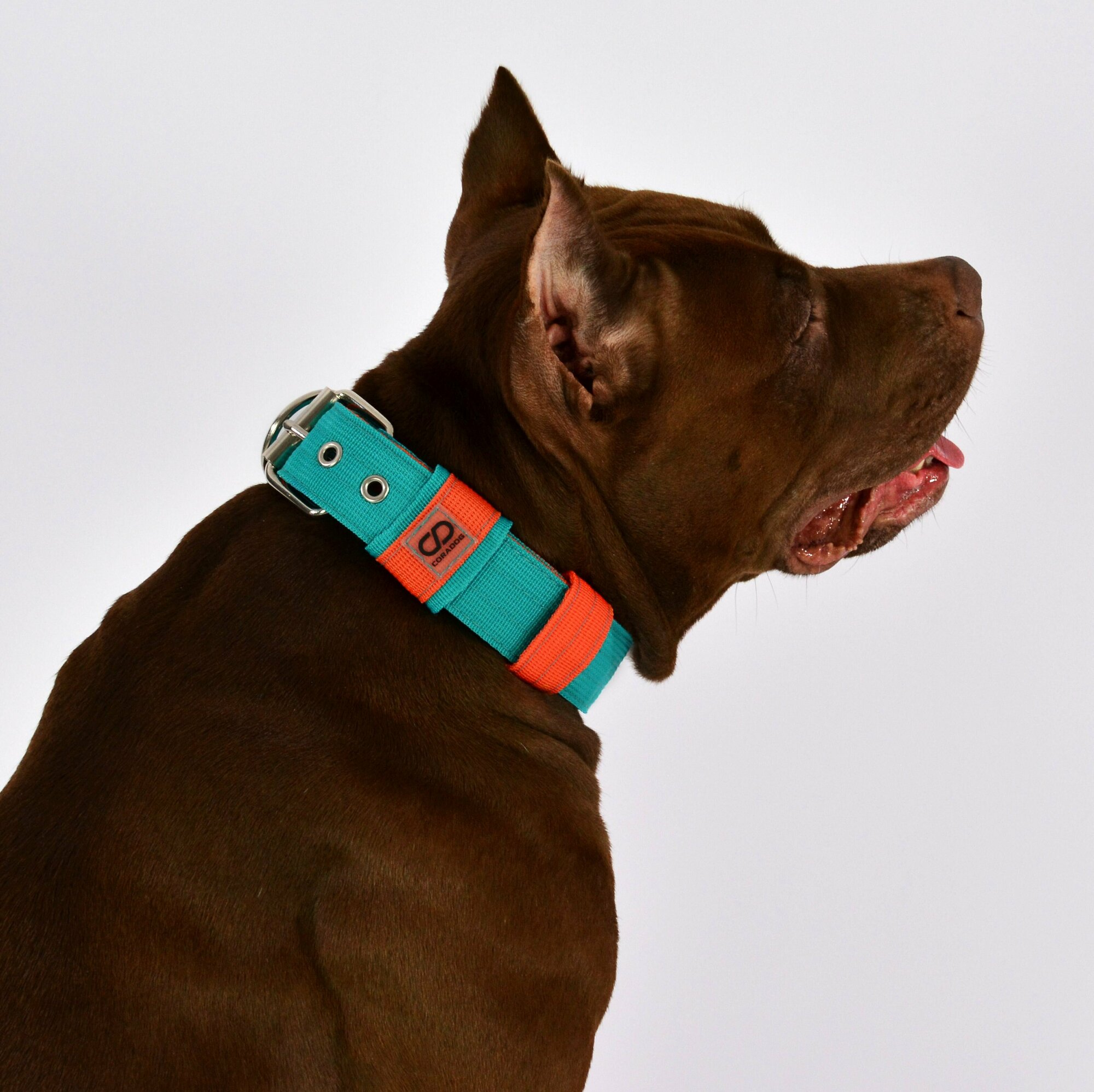 Ошейник высокопрочный, CORADOG Heavy Metal, для маленьких и средних собак, бирюзовый, оранжевый, размер S 35-45 см