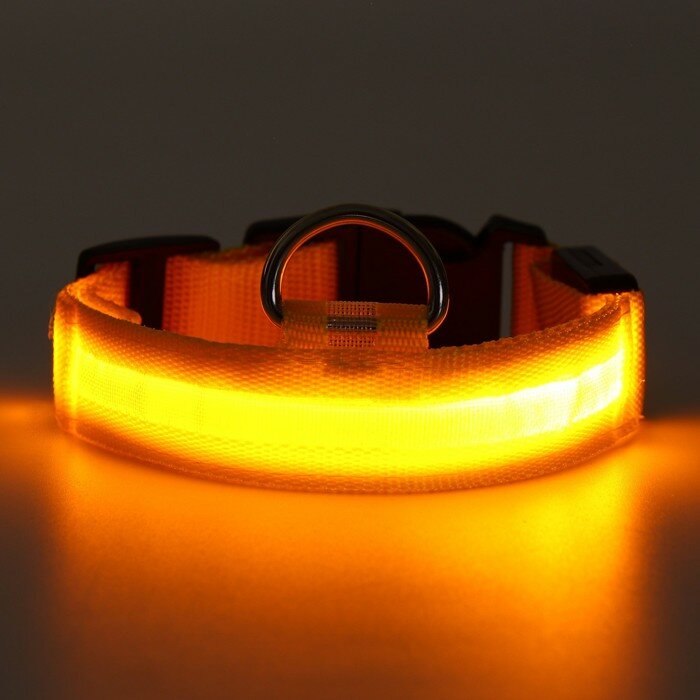 Ошейник с подсветкой размер S, ОШ 35-43 х 2,5 см, 3 режима свечения чёрный