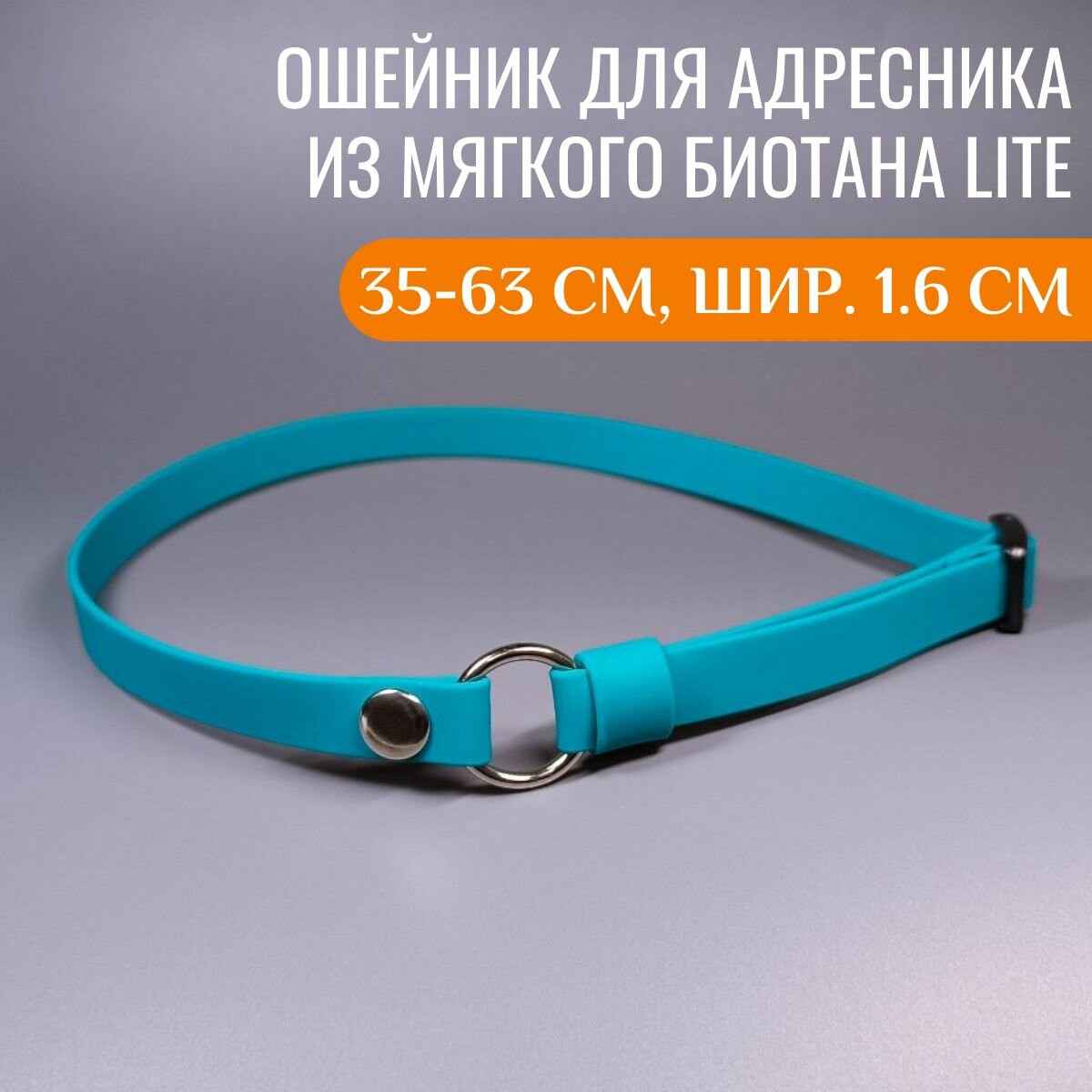 R-Dog ошейник для адресника из плотного биотана, цвет бирюзовый, 43-53 см, ширина 1,6 см