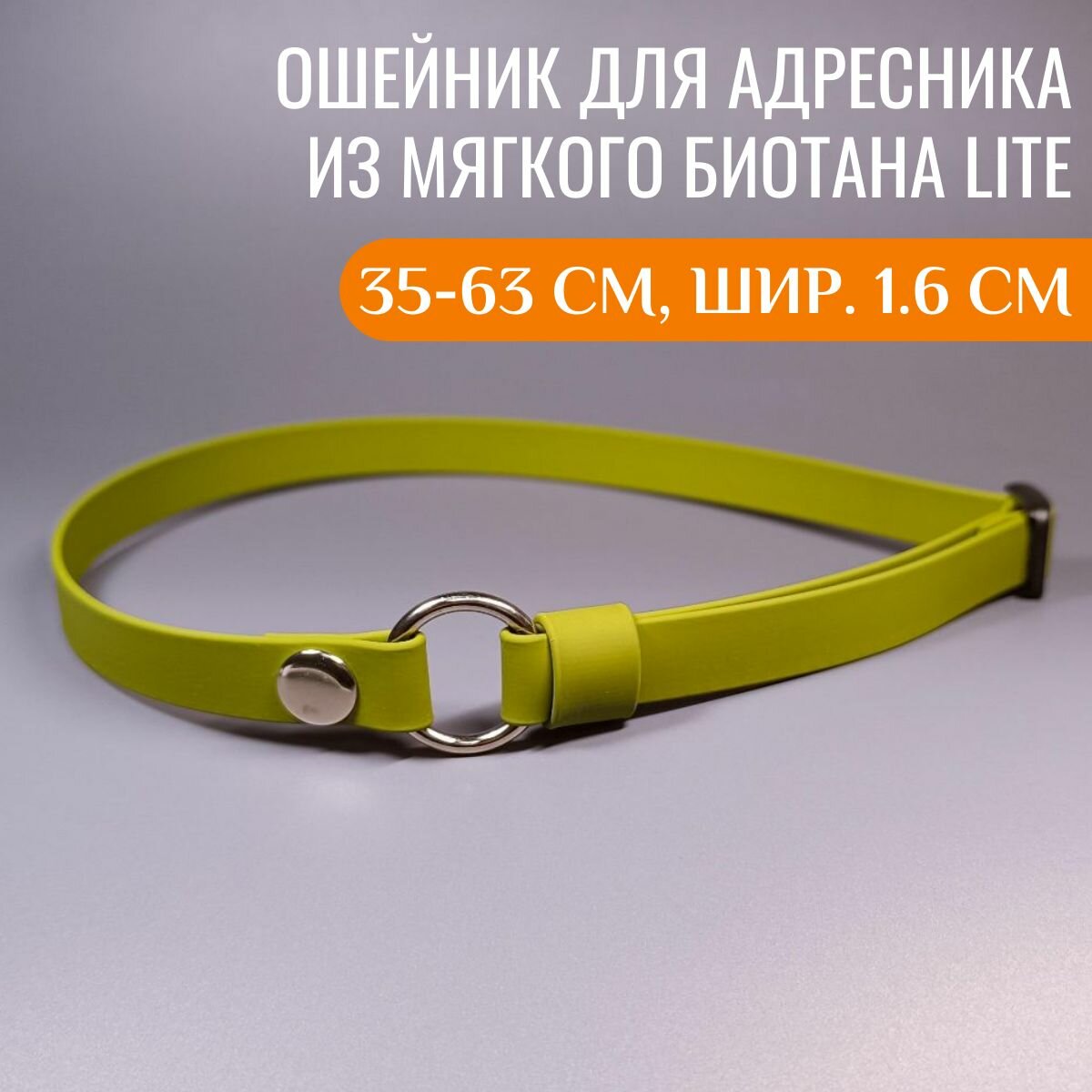 R-Dog Тонкий ошейник из мягкого биотана Lite для адресника, цвет зеленое яблоко, 35-63 см, ширина 1,6 см