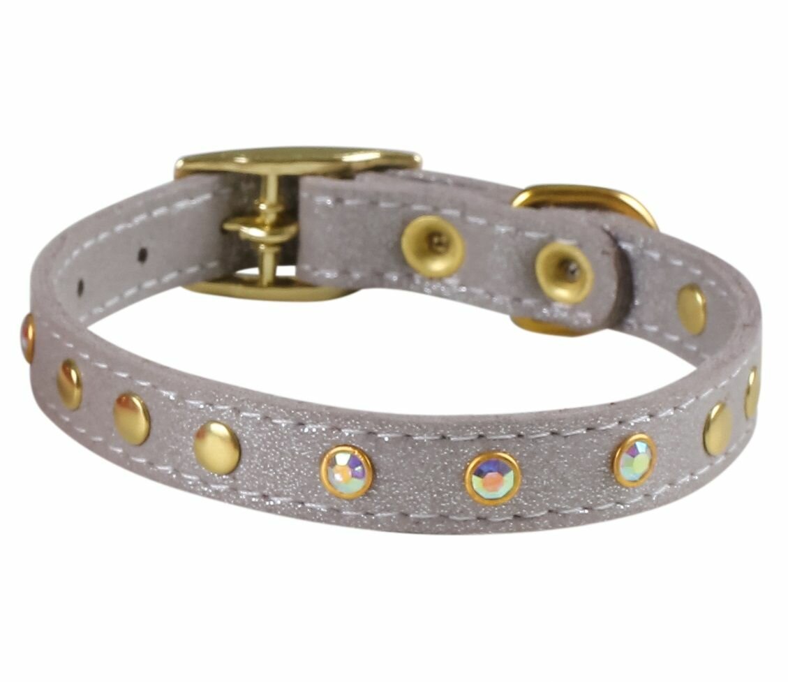 Купить Ошейник для маленьких собак, кошек, кроликов ОШ 22-28 см, ширина 13 мм / кожаный ошейник со стразами для щенков
