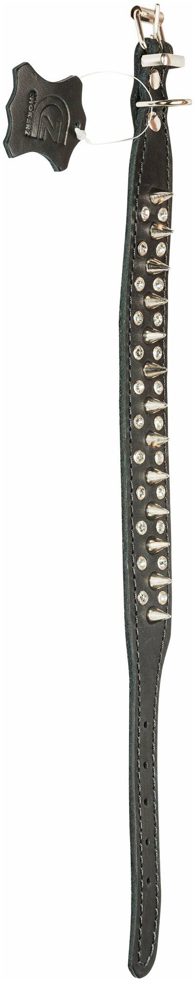 Купить Ошейник кожаный черный CHOKERZ со стразами и шипами для средних собак 32-40 см.