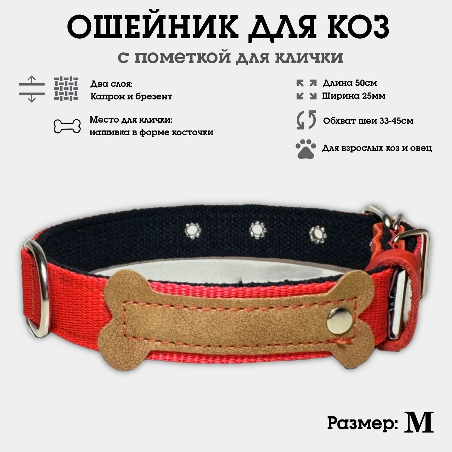 Ошейник для коз, овец, козлят, ягнят, двуслойный из капрона и брезента, усиленный M интересное: