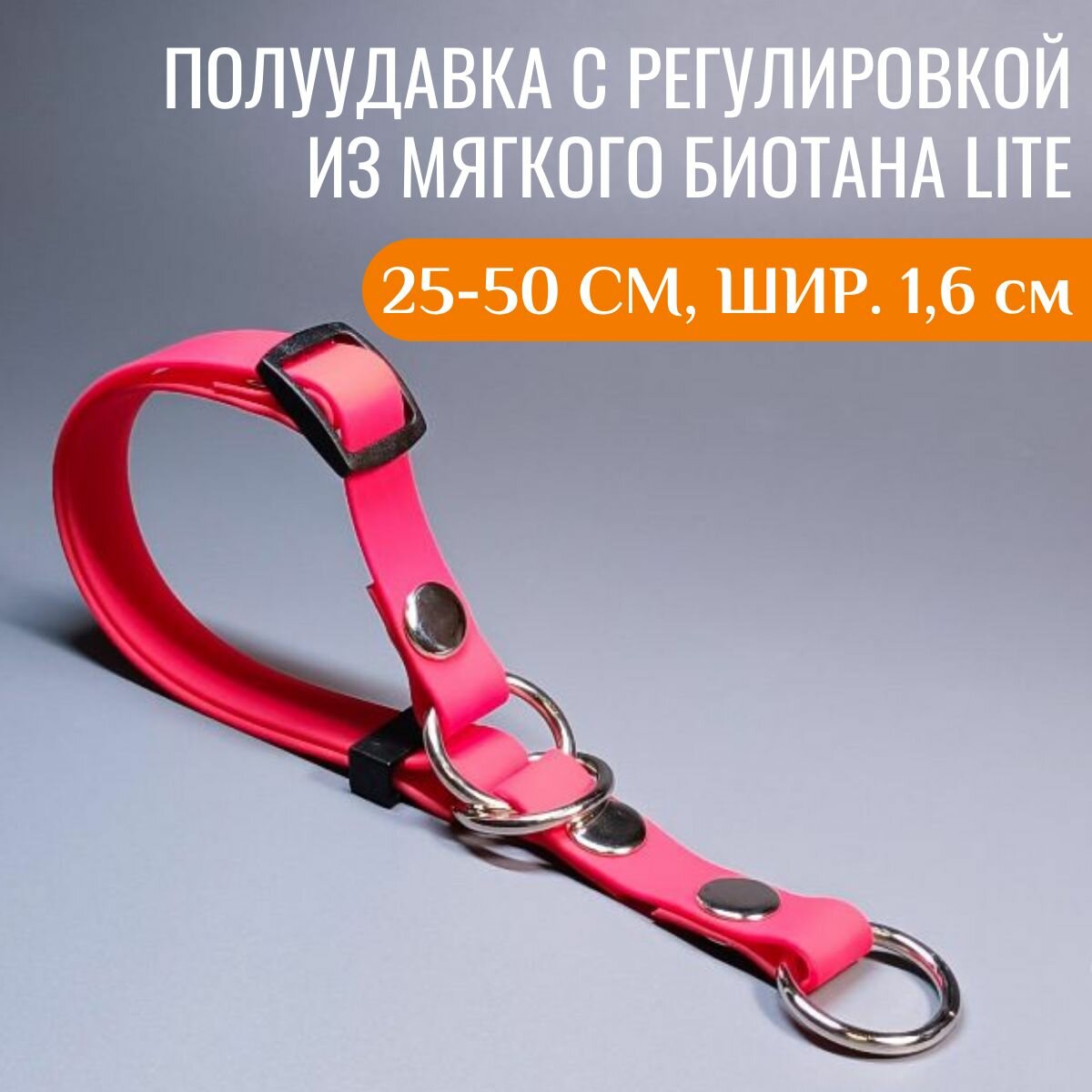 R-Dog Регулируемая полуудавка из мягкого биотана Lite, цвет розовый, длина 35-60 см, ширина 2,5 см