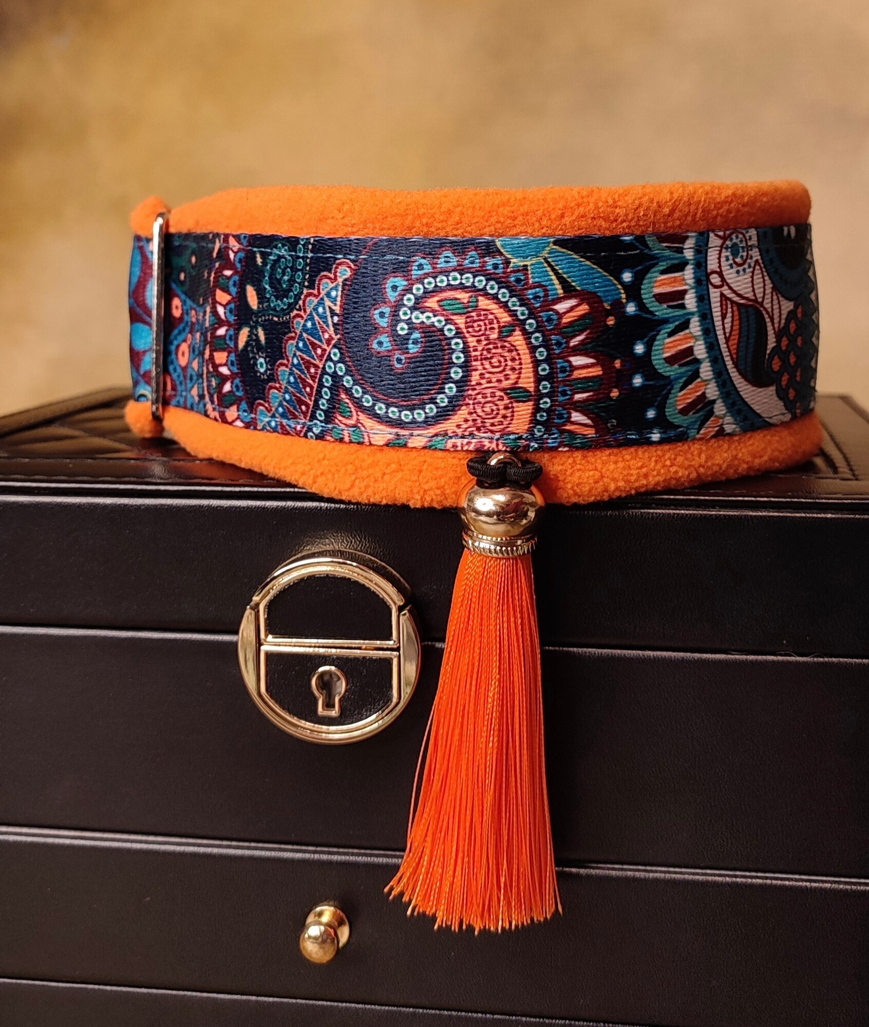 Купить Ошейник пейсли огурцы для борзых собак, полуудавка "Мартингейл" ручной работы, 4см размер M со съемной кисточкой