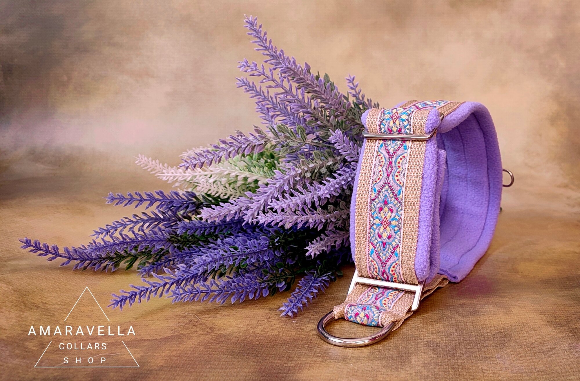 Ошейник пейсли огурцы для борзых собак, полуудавка "Мартингейл" ручной работы, 4см размер L со съемной кисточкой