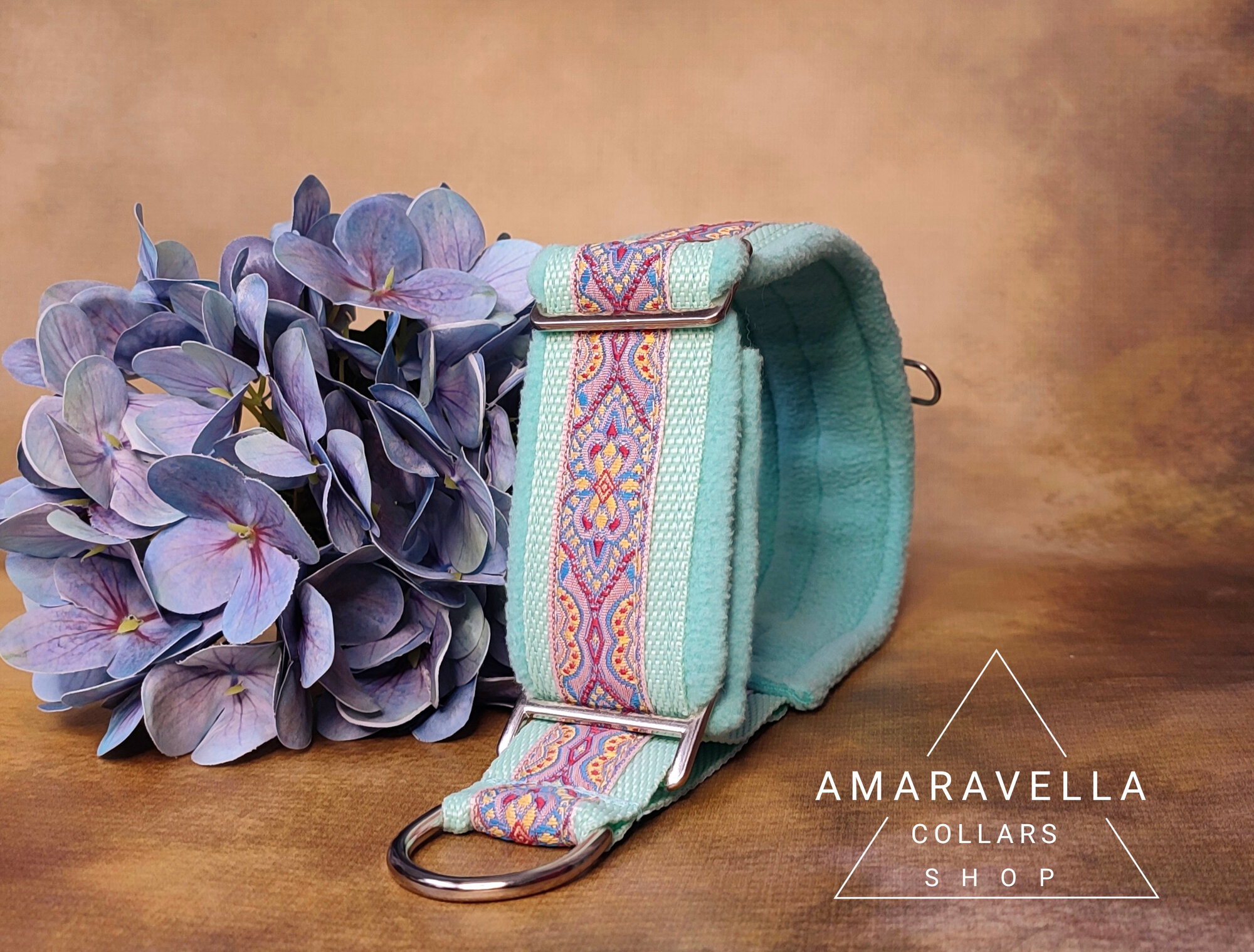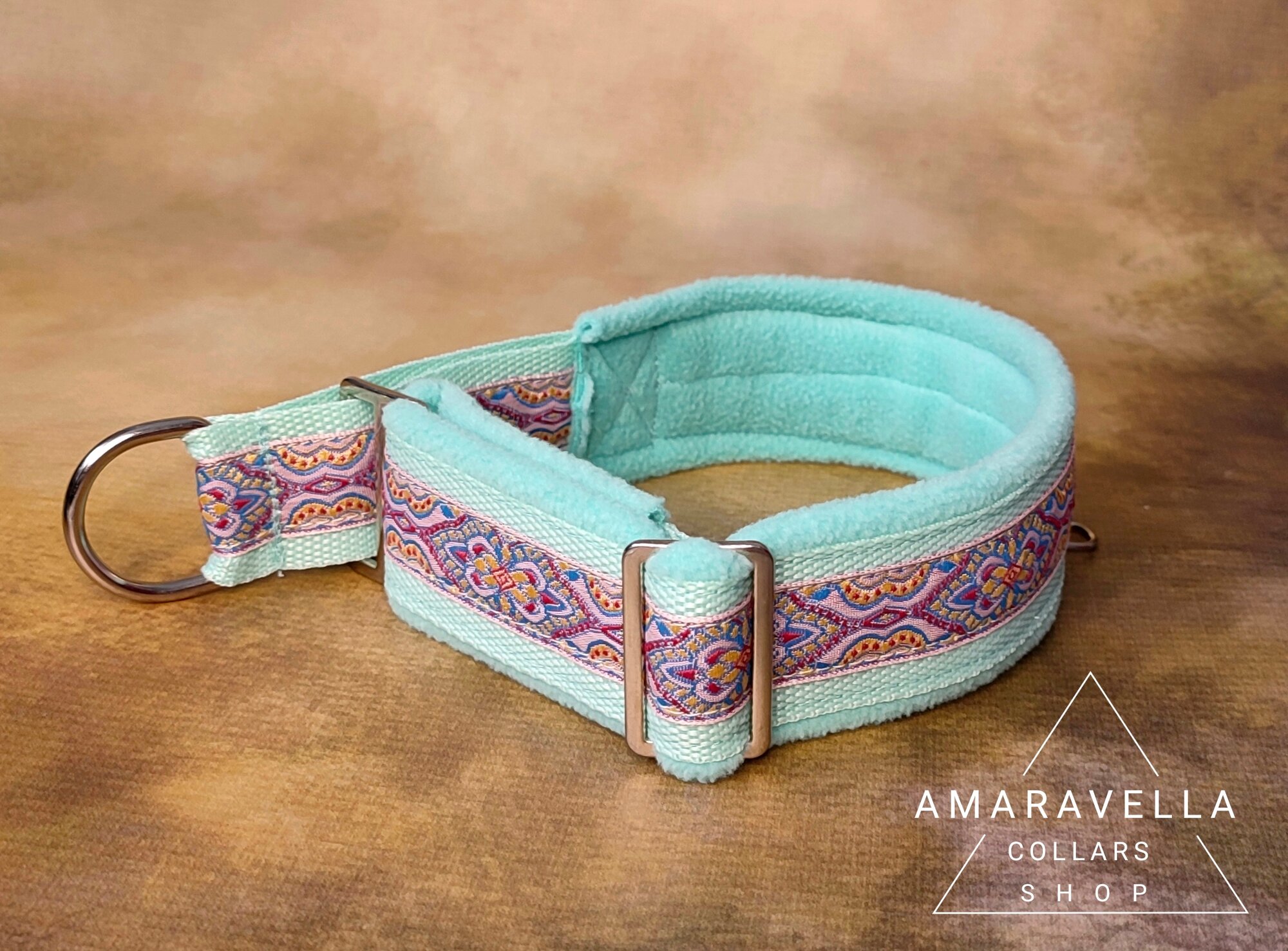 Ошейник бирюзовый для борзых собак, полуудавка "Мартингейл" ручной работы, 4см размер M