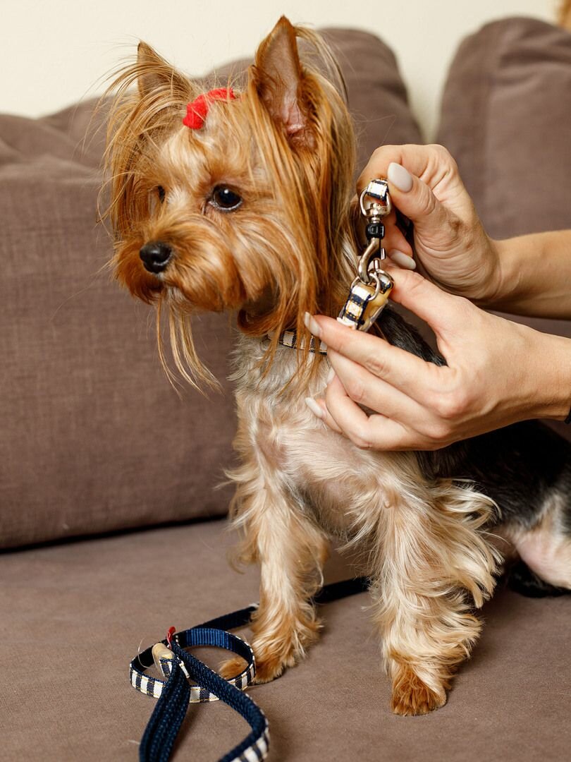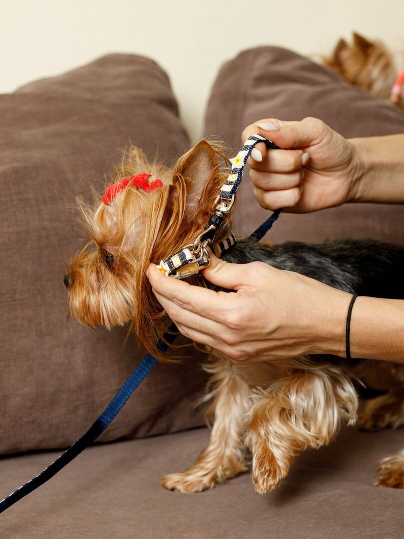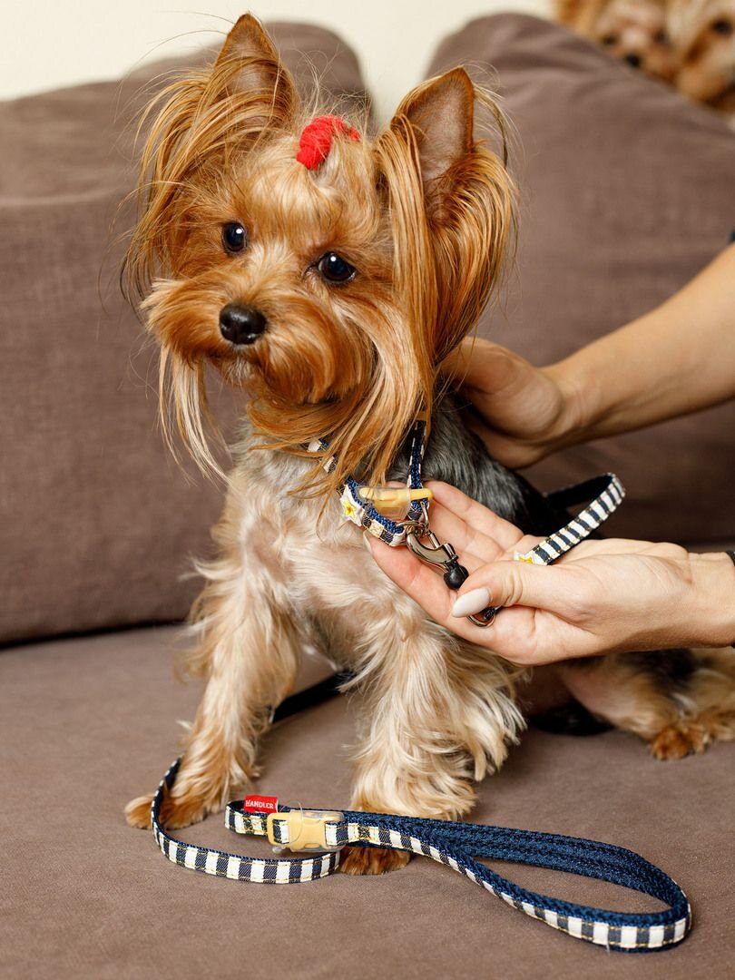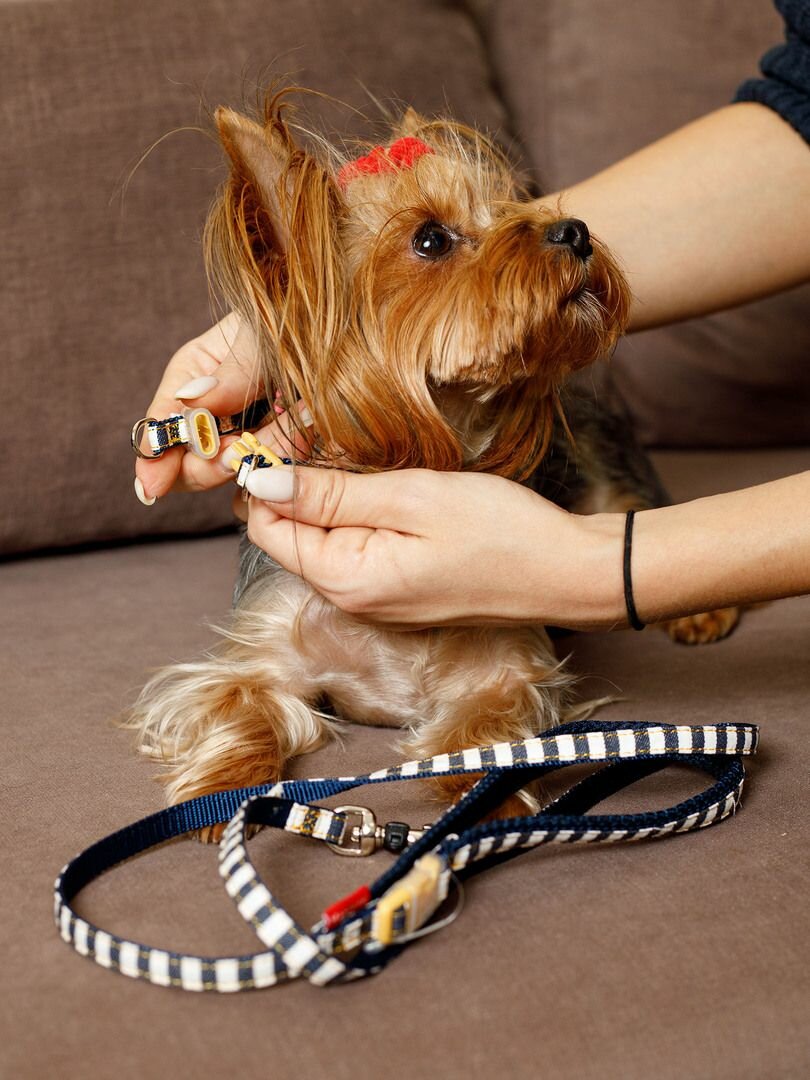Купить Ошейник для собак Japan Premium Pet джинсовый "Английский стиляга" с силиконовой защитой и двойным креплением, размер SS (цвет: синий)