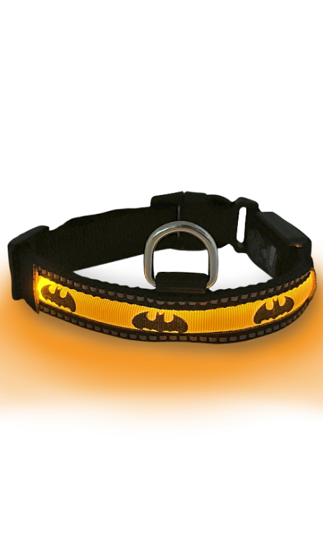Купить Buckle-Down ошейник для собак светящийся "Бэтмен" желтый 28-43|Размер: